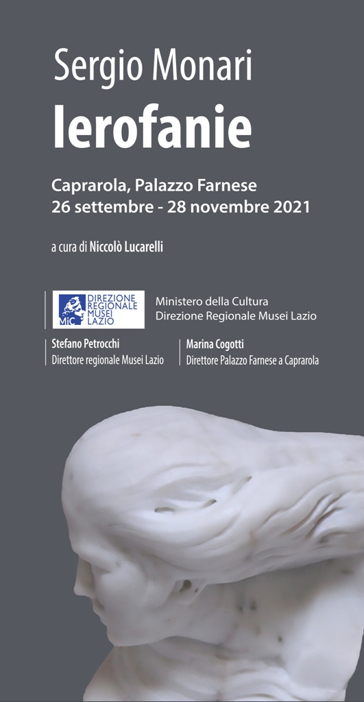 Da domenica 26 settembre 2021 la Direzione Regionale Musei Lazio, alla presenza del direttore Stefano Petrocchi e della direttrice di Palazzo Farnese Marina Cogotti, aprirà le sale della sontuosa dimora farnesiana alla scultura classicheggiante di Sergio Monari, protagonista con la personale Ierofanie, curata da Niccolò Lucarelli, che rimarrà in mostra fino al 28 novembre.