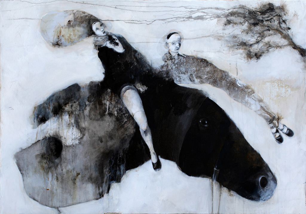 Vai via nero. Dopo un’epigrafe che cita il sommo poeta romantico potevate aspettarvi un avvio lancia in resta con disquisizioni letterarie intorno alle nuove abluzioni oniriche di Sergio Padovani. E invece no. “Vai via nero” è una licenza che mi son preso dall’ultima fatica musicale della band inglese Bauhaus, che sempre cara fu ai darkettini d’ogni razza e d’ogni età. Una licenza, perché naturalmente il titolo originale del succitato disco è Go Away White. Questa serie inedita di Sergio Padovani nasce per partenogenesi da un abbandono: il nero in favore del bianco. Lungo addio di cui già assaggiammo un bocconcino nella produzione precedente, dove un lago di nebbia informava soggetti che emergevano da un fondo nero mai innocente. Ciò, non per dire che l’artista modenese stia ora attraversando il deserto, o il periodo blu, o il periodo rosa, come un Picasso qualsiasi. Ma per enfatizzare la possibilità dell’esser cattivi fino a farvi sanguinare gli occhi, senza con ciò stesso abusare del buio della notte senza fine. Ciononostante, i riferimenti alla foscoliana imago della fatal quiete e alla mitica Euterpe (lemma volgare per dire: la musica) permangono. E anche in dose massiva.