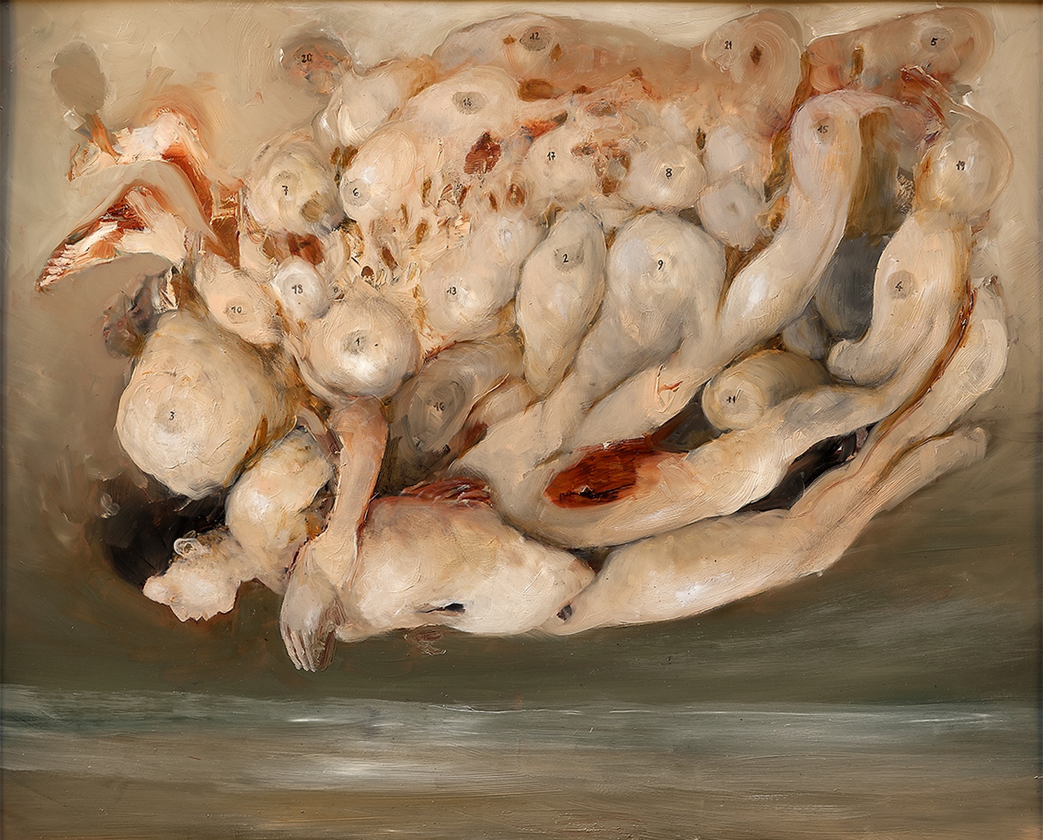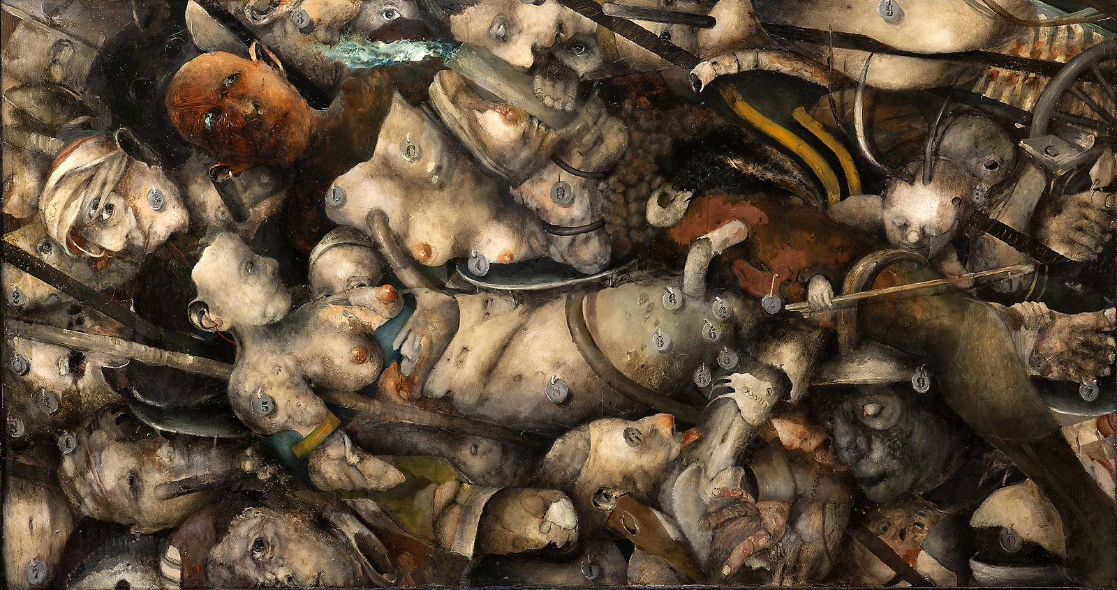 La mostra, curata da Cesare Biasini Selvaggi con Francesca Baboni e Stefano Taddei, comprende oltre 60 dipinti, quasi tutti inediti, di grandi dimensioni e di recente produzione. Una pittura figurativa visionaria che si fonda su composizioni fantastiche quanto allucinate, scene inquietanti, paesaggi incendiati da venature crudeli e qualche pennellata di mélo.