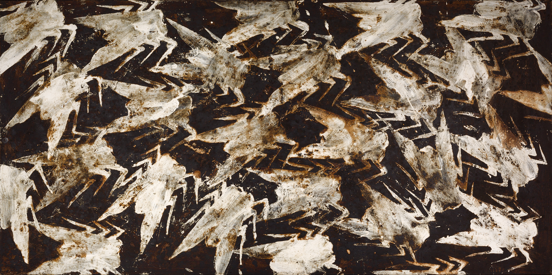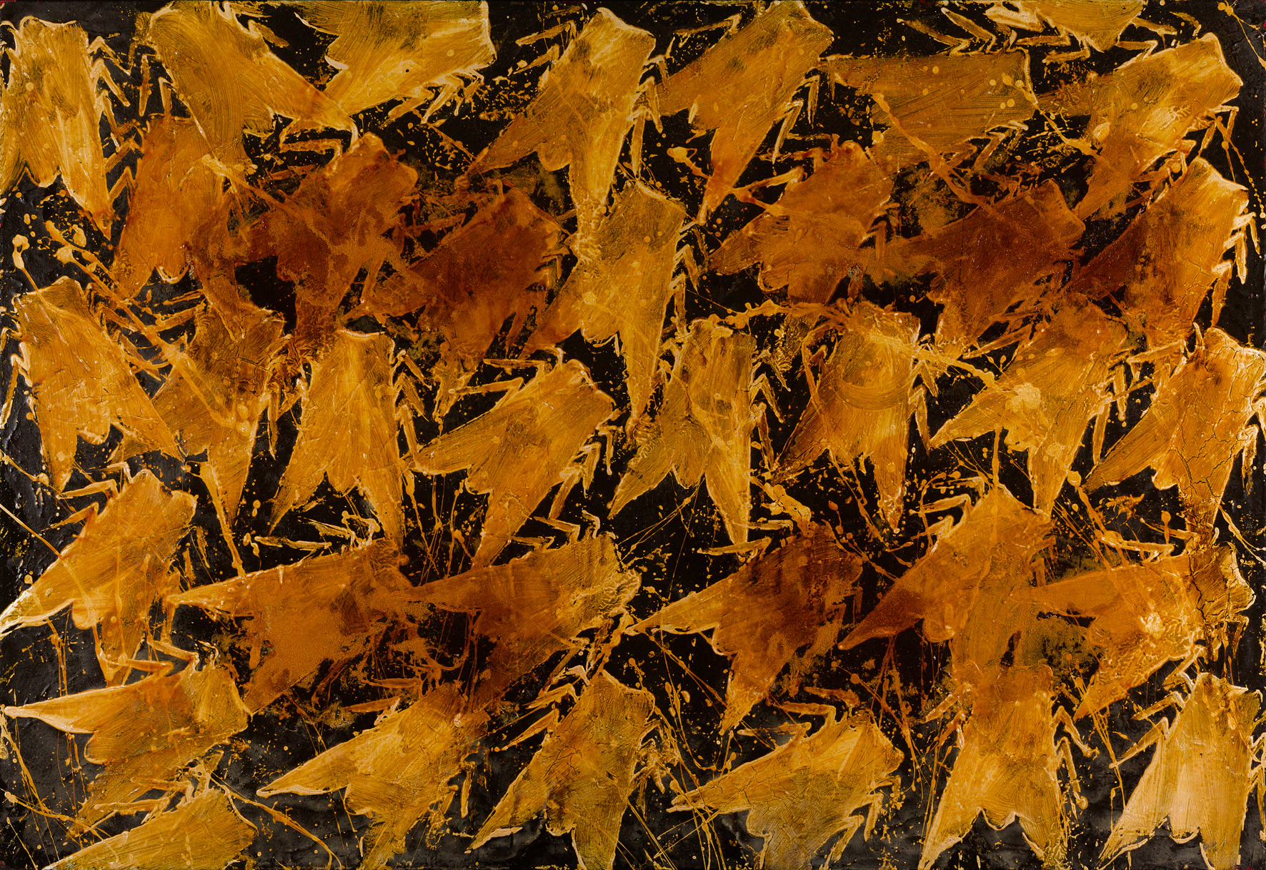 La galleria Biasutti & Biasutti presenta una mostra dedicata a Sergio Ragalzi (Torino, 1951 – 2024). Un omaggio all’artista, recentemente scomparso, protagonista della scena torinese e non solo, la cui ricerca si è focalizzata da sempre sull’uomo, sul senso di smarrimento che accompagna l’evolversi della specie e su una analisi delle radici dell’esistenza. Il titolo della mostra, Insetti, rimanda all’omonimo ciclo di dipinti realizzati a partire dalla fine degli anni Ottanta, quale tappa evocativa del noto racconto di Franz Kafka sulla metamorfosi. Spiegava Ragalzi in una recente intervista: “Lavoro da sempre sull’uomo, ho sondato tutte le possibilità di bombardamento e condizionamento dentro e fuori da noi: siamo soggetti a eventualità imprevedibili e proprio come il Gregor Samsa di Kafka rischiamo di svegliarci una mattina nel corpo di un insetto”. Attraverso questo procedimento kafkiano all’arte, Ragalzi sembra liberare questa ansia irrazionale, definendo il suo “lavoro interiore ed esistenziale formato da due componenti: una materica e l’altra figurale, non figurativa, ma di elementi corporali identificati con il malessere dell’esistenza”. Ecco che il turbamento dell’artista trova sfogo nelle grandi tele, esposte negli spazi della galleria. Eserciti d’insetti, “temibili e […] fastidiosi”, metafora dei limiti e della finitudine dell’uomo, si muovono occupando tutto lo spazio possibile, in sequenze dai ritmi serrati e martellanti, come marchiature, quasi un codice, un alfabeto insettiforme. “Con gli insetti ho iniziato a creare questa pittura timbrica, ripetitiva e ossessiva” , dichiarava Ragalzi nel colloquio con Trini, un’esatta riproduzione iconografica, nuove forme di vita ibrida rappresentate dall’alto, in un formato che le rende speculari e moltiplicabili, stampigliate eppure dipinte a mano. Quello di Ragalzi è un linguaggio originale e sapiente, la cui forza comunicativa è sostanziata dalla costante presenza del “nero”, profondo, totale, dirompente, “un non colore”, sosteneva, che “crea delle vibrazioni sulla superficie” , che include ed esclude, che è buio e luce. Le forme allineate, immobili e senza tempo, prendono vita, agitate dall’uso di un oro brillante o di un rosso acceso o più spesso dal predominante bianco. Una visione profonda e consapevole, talvolta scomoda, che non ha mai seguito le leggi del mercato o l’estetica della contemporaneità, ma con una capacità di sogno, seppur cupo e doloroso, di racchiudere nelle sue tele affaticate le tracce e i segni della storia.