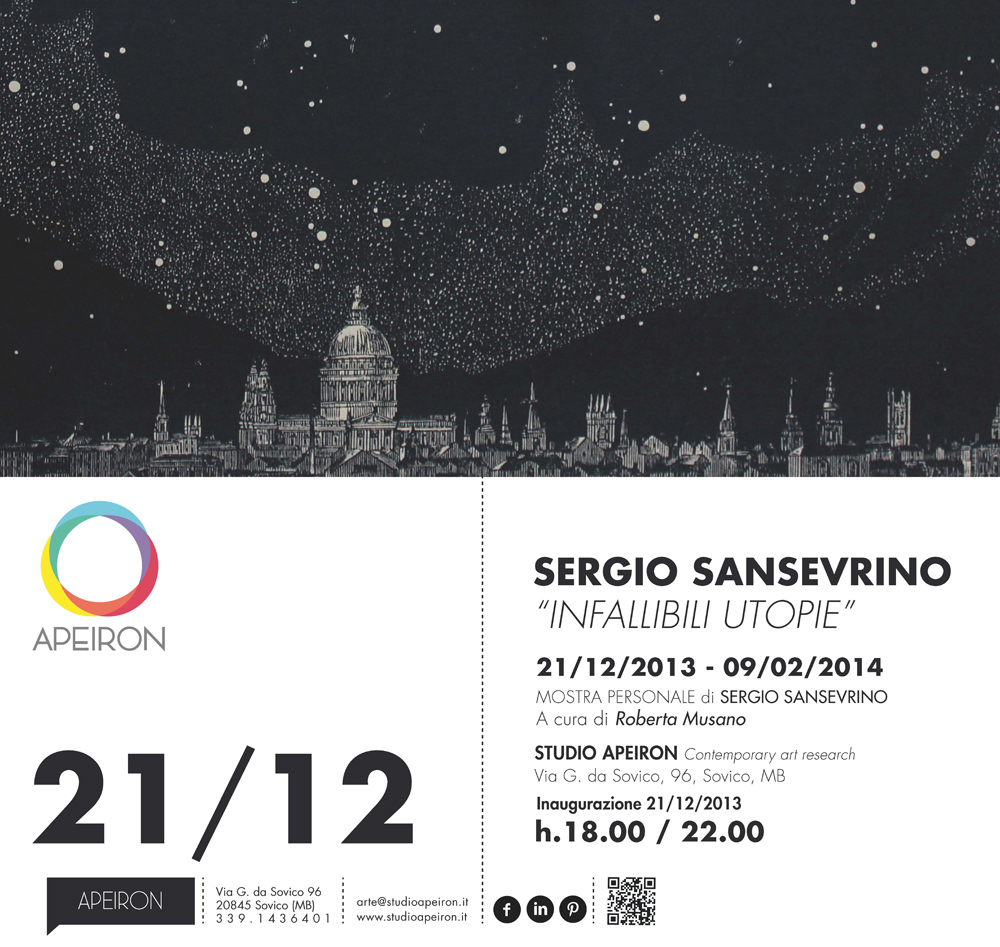 Oscar Wilde diceva che “siamo tutti nati nel fango, ma alcuni di noi guardano alle stelle”, e uno di questi è l’artista milanese Sergio Sansevrino che, in mostra dal 21 dicembre allo Studio Apeiron di Sovico, propone i suoi ultimi lavori interamente dedicati a stelle, costellazioni e pianeti.