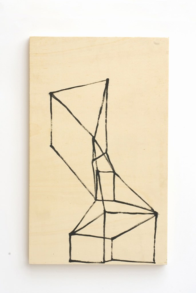 Sulla stessa sequenza è realizzata una installazione composta da due grandi disegni su vetro attraversati dalla luce al neon. Un muro basso, posto al centro della stanza, fa da diaframma fra le due opere poggiate a terra, impedendone la contemporanea visione d’insieme.