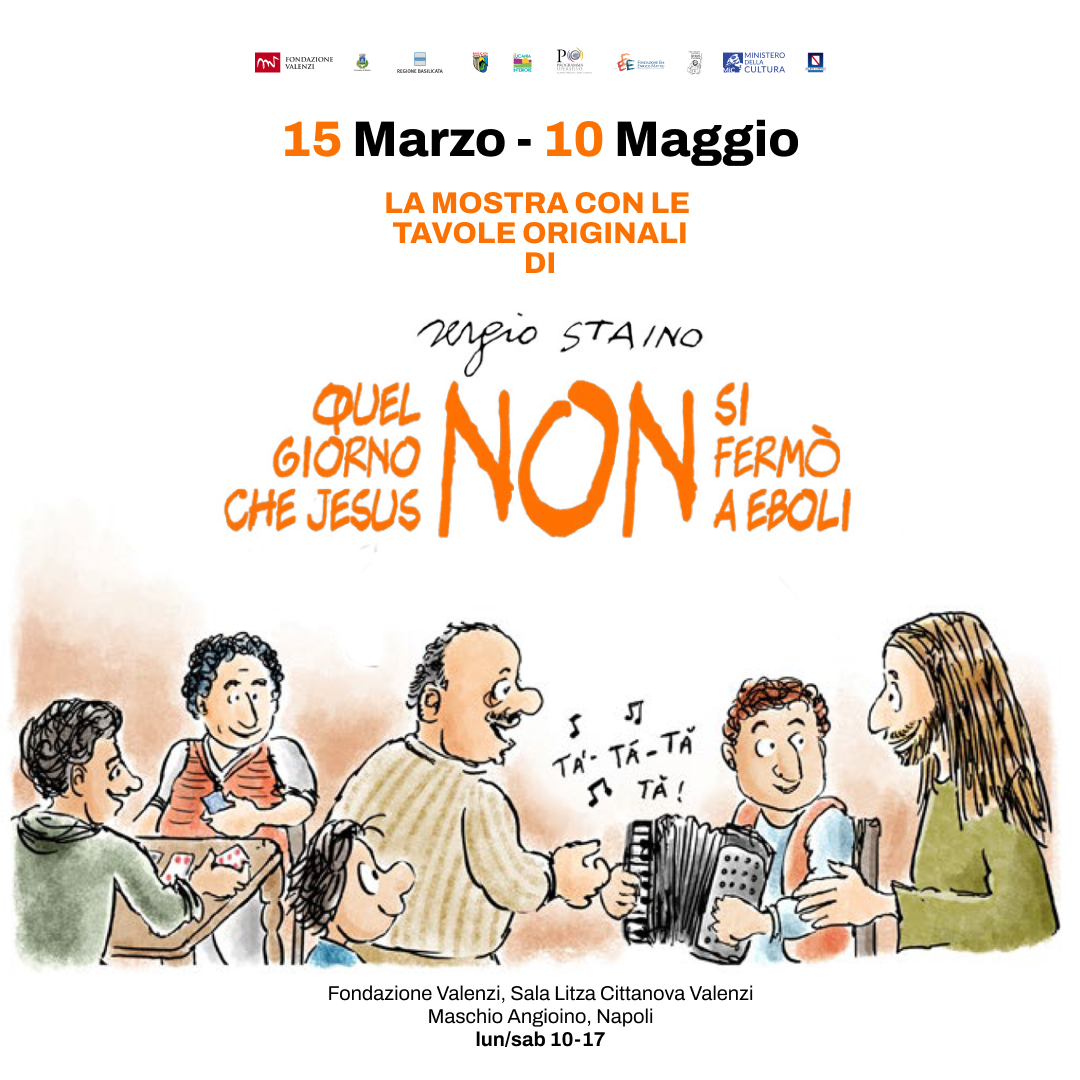Sabato 15 marzo alle ore 11 nella sede del Maschio Angioino nella sala Litza Cittanova Valenzi la mostra di Sergio Staino "Quel giorno che Jesus non si fermò a Eboli" il vernissage della mostra delle tavole originali del disegnatore con il Sindaco di Aliano