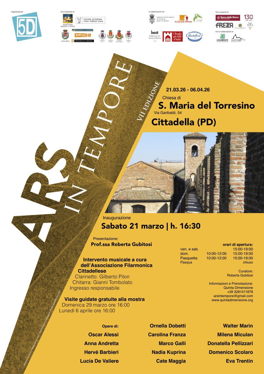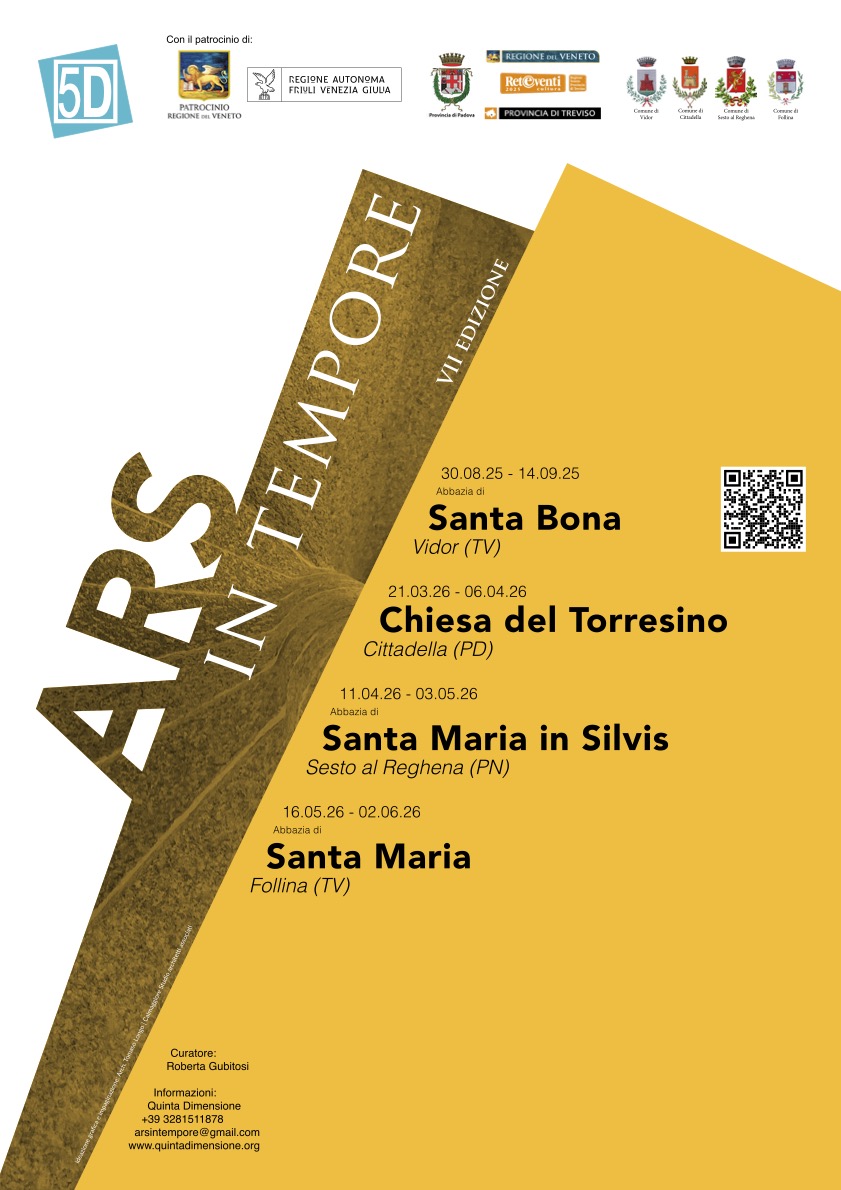 La Settima edizione, aperta a settembre con la mostra “Mindskape” presso l’Abbazia di Santa Bona di Vidor (TV), prosegue nel 2026 con le mostre nell’antica città murata di Cittadella (PD), presso la Chiesa di Santa Maria del Torresino, e nei Borghi più Belli d’Italia di Sesto al Reghena (PN), presso l’Abbazia di Santa Maria in Silvis, e di Follina (TV), presso l’Abbazia di Santa Maria.