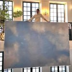 Gli oli dai caldi colori che l’artista mutua dallo spettro solare, sono stesi sulla tela come veli trasparenti che vanno ricoprendo il supporto materico che ha la sola funzione di renderli visibili. La composizione armoniosa dei colori, disegna nuvole leggere che aleggiano come serafini danzanti, rivelando la natura immutabile ed eterna dei cieli che, non curanti del tempo, dello spazio e degli uomini, rinascono ogni giorno uguali a sé stessi nella loro poetica bellezza.