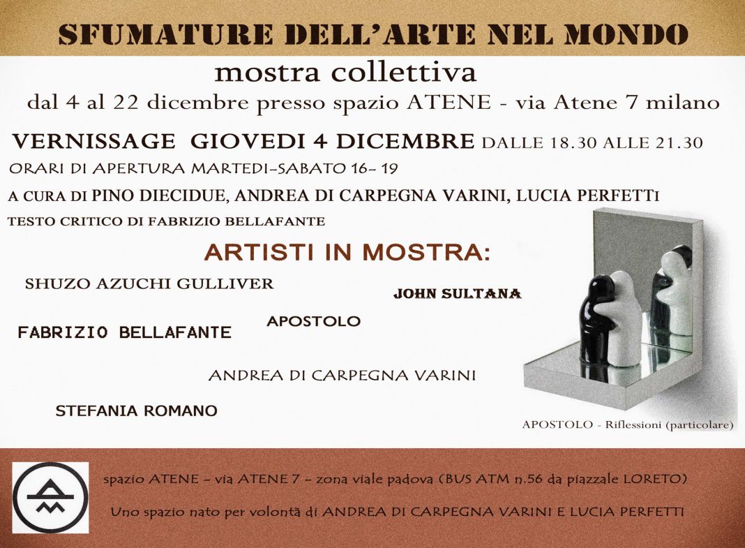 Dalla recente collaborazione con l'instancabile passione per la creatività e cultura di Pino Diecidue inizia un interessante progetto con l’intento di far conoscere Spazio Atene attraverso un’esposizione collettiva di artisti che hanno ruotato tra le più interessanti Gallerie di Milano.
