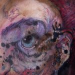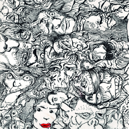 L’artista realizza opere a china su carta, prediligendo il nero, integrando talvolta il rosso per