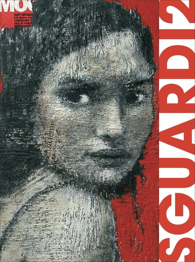 Monica Leonardo propone quattro opere, tra cui un trittico e due dittici di grandi dimensioni, tecnica mista su tavola lignea, realizzate in questi ultimi anni. Il soggetto dominante di questi dipinti è la donna, che appare subito a figura intera o a mezzo busto e, poi, si avvicina mostrando il volto. Sono immagini dalla bellezza stupita e malinconica, che sprigionano un atteggiamento remissivo, di completo abbandono, e, nel contempo, distaccato, come se non ci fosse alcun coinvolgimento interiore. E’ un’idea di femminilità che richiama quella dei rotocalchi di moda: una seducente presenza concreta, non foss’altro che per la superficie scabra, sporca e in fermento, ma anche un’assenza piena di fascino, un essere altrove che magnetizza l’attenzione, una vita pronta a essere ferita perché non butta sangue. In un certo senso, simulacri vuoti alla Baudrillard. O, come osserva Marzio dall’Acqua in un catalogo dedicato a Monica Leonardo: “parlanti pagine di riviste incollate sui muri, financo fotografie graffiate, strappate, segnate, violentate”.