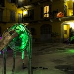 La discesa prosegue nell’oscurità degli Sciacalli, ambiente che si configura come un confronto brutale e archetipico con l’inconscio e con la materia primordiale. Le sculture assumono qui una presenza dalle fattezze animalesche, rimandando al Cerberus dantesco, entrambi custodiscono una soglia oscura, simboli di un istinto primordiale che separa e insieme collega il mondo visibile a quello dell’inconscio. mentre il suono si fa più profondo, pulsante, stratificato.
