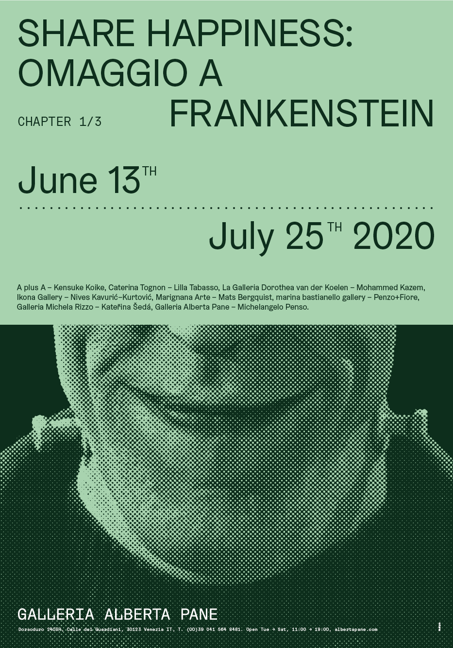 Il progetto Share Happiness consiste in una trilogia di mostre che verranno realizzate all’interno dello spazio della Galleria Alberta Pane di Venezia, tra il 2020 e 2021.