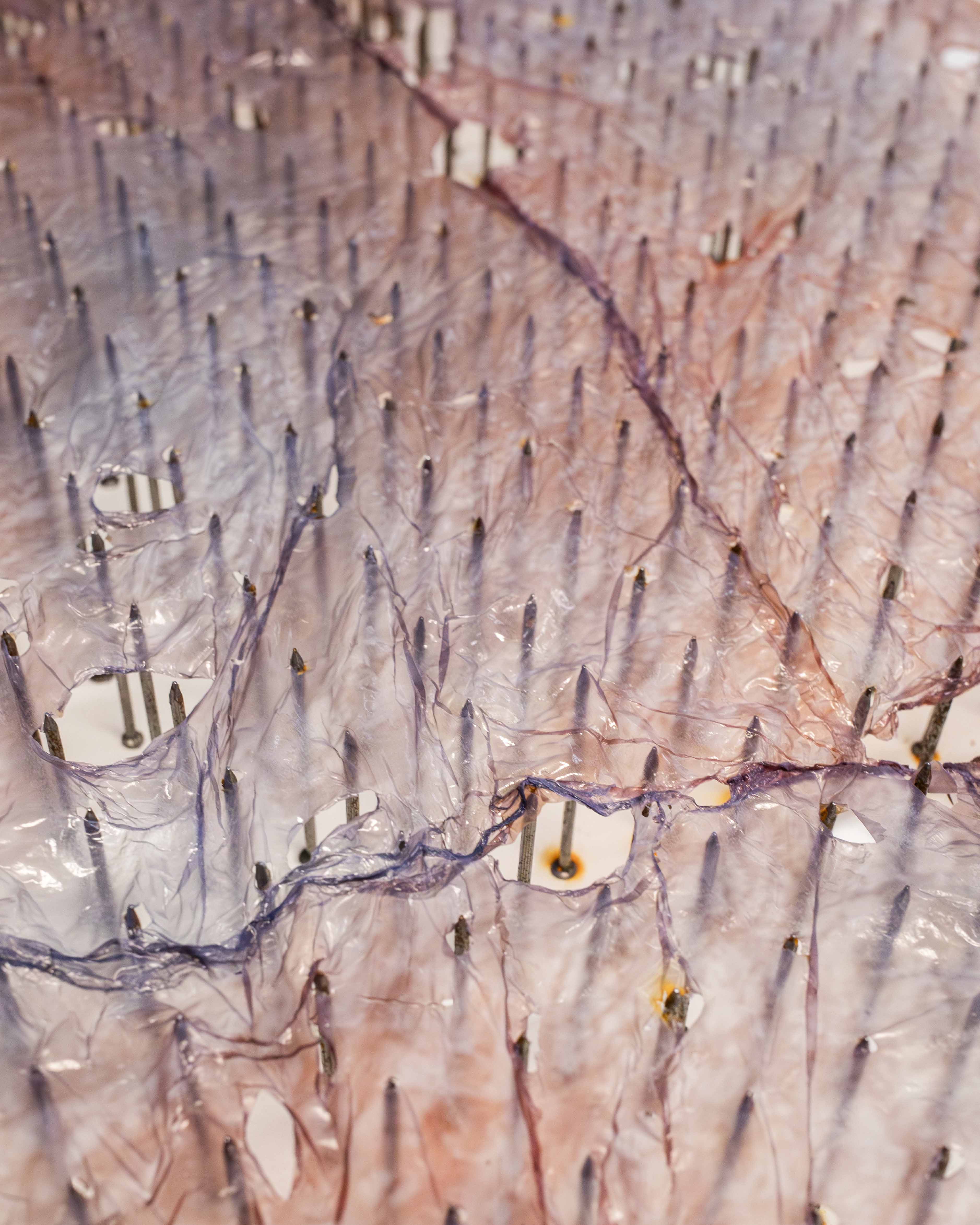 Attraverso questo tipo di immaginario, Vignati sembra voler rimarcare il processo doloroso che conduce alla creazione, una ferita profonda, lontana dal suo processo di cicatrizzazione, da cui scorre incessantemente un sangue lento e dolce, vivido e metallico.