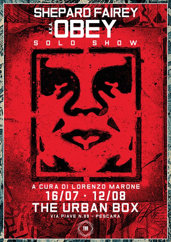Tra i più famosi e apprezzati street artist al mondo, “Obey” ha prodotto opere per fondazioni, musei tra i più famosi al mondo e per iniziative benefiche di richiamo internazionale, grazie al suo stile inconfondibile che unisce una struttura compositiva che richiama i manifesti propagandistici dei totalitarismi con l’inserimento di icone della musica o dello spettacolo immediatamente identificabili creando un collage dalle tinte forti di innegabile impatto visivo.