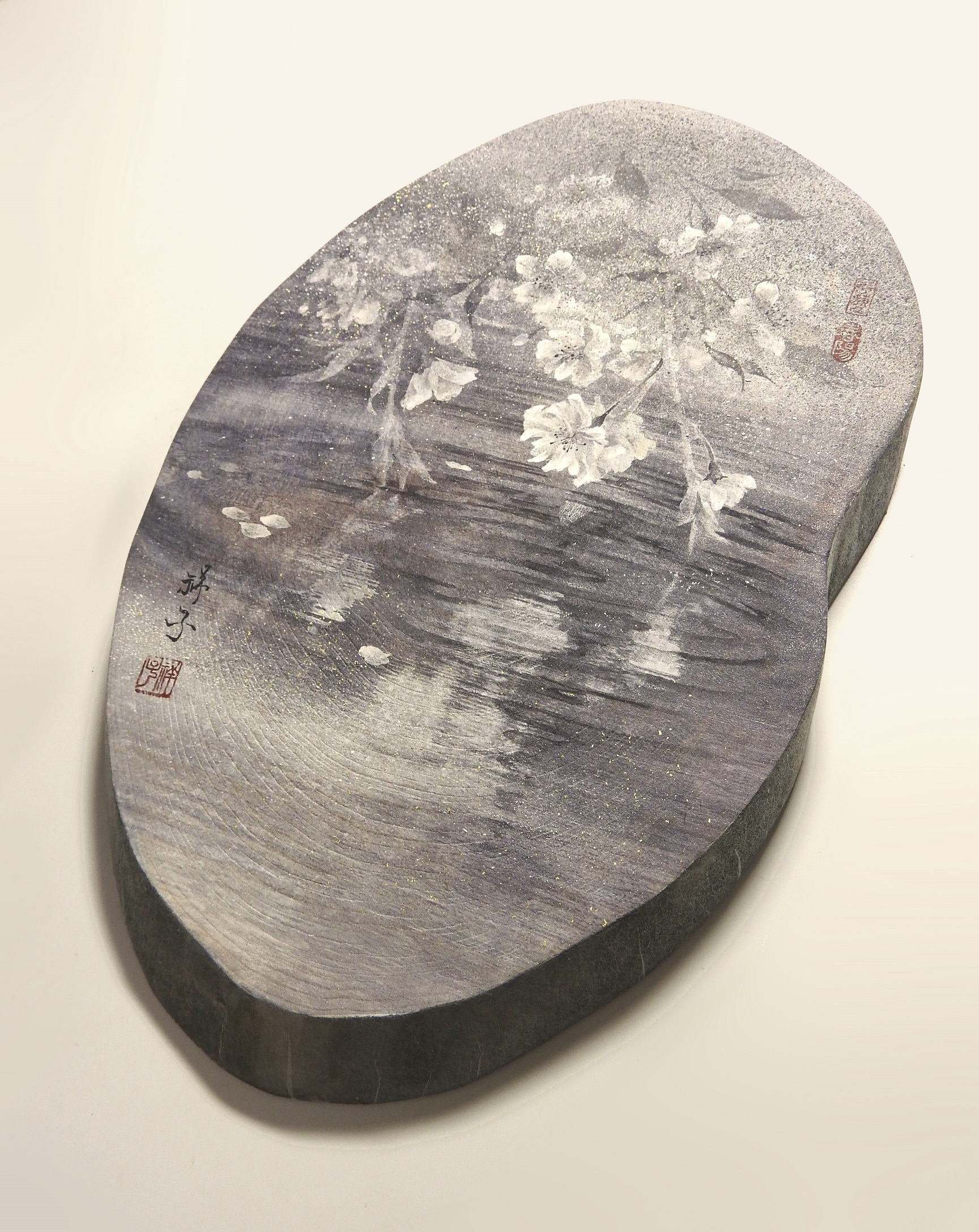 Ogni dipinto raffigura una scena effimera tratta dal mondo naturale, che si riflette nell’acqua increspata, invitando a meditare sulla transitorietà della vita stessa.