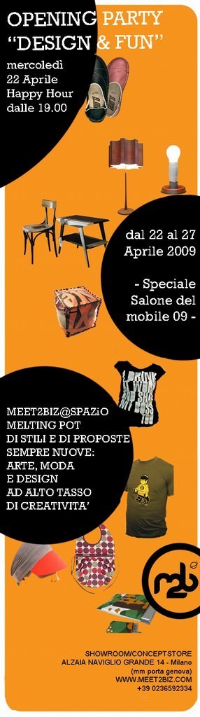 In occasione del Salone del Mobile 2009, Meet2Biz ospita nello SHOWROOM/CONCEPT STORE di Alzaia Naviglio Grande, numerosi designer e stilisti emergenti.