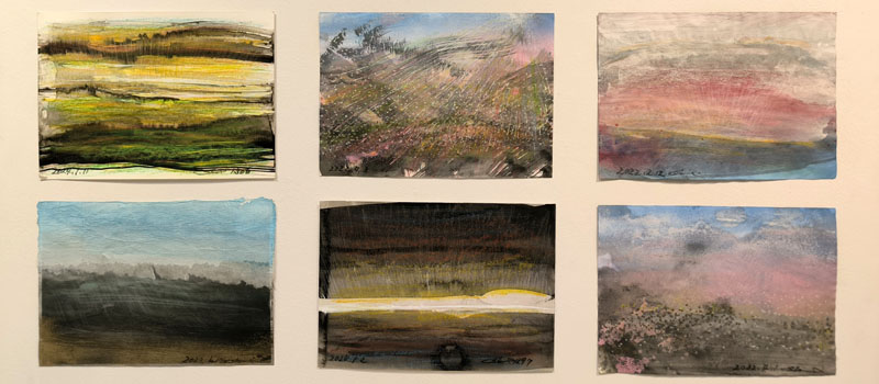 Presenti nelle sale della galleria una una raccolta di dipinti su tavola e tela di vari formati, l’installazione “Diario” ed il progetto pittorico “Shin-on”.