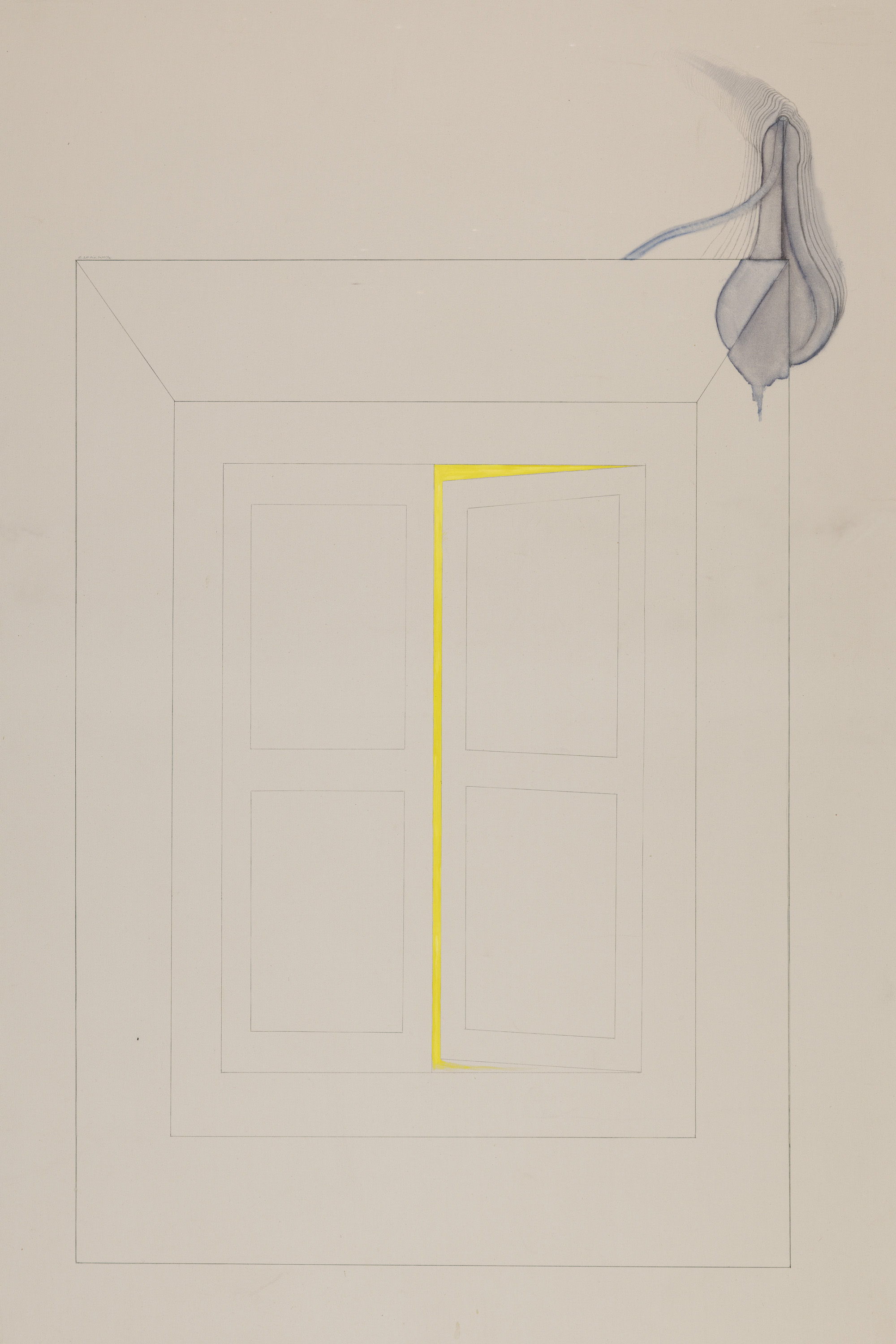 In mostra alla Galleria Milano sono tele, carte e grafiche degli anni Sessanta e dei primi Settanta, dove indaga il rapporto tra spazio e tempo in una sintesi che lui stesso definisce come filosofia del vuoto, o blank. Proprio in questo periodo pubblica la prima edizione (in lingua tedesca) del fondamentale volume The Mechanism of Meaning (1971), realizzato insieme a Gins: il suo obiettivo primario è comprendere, appunto, il “meccanismo del significato” con un approccio interpretativo, più che analitico. Le sue tele, di grandi dimensioni ma mai omogenee, sono piene di “punti focali”, addensamenti di frecce, tubi, elementi rotanti, lettere e parole come mistake, a rappresentare il continuo cortocircuito di significazione in cui si incaglia l’uomo. Frequente è anche bottomless, una sorta di piramide quadrangolare che, nel bianco della tela, appare come un oggetto misterioso, sovvertito e sospeso. Tutt’attorno le “macchie di blank, di non-quadro, che interrompono l’universo del tessuto-quadro e ci danno la sensazione che il