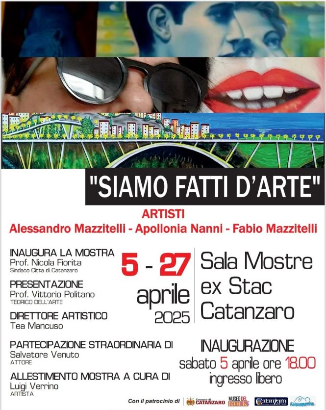 La mostra “SIAMO FATTI D’ARTE “si svolgerà presso LA PALAZZINA LOCALI EX STAC COMUNE DI CATANZARO DAL GIORNO 5 APRILE AL GIORNO 27 APRILE 2025.