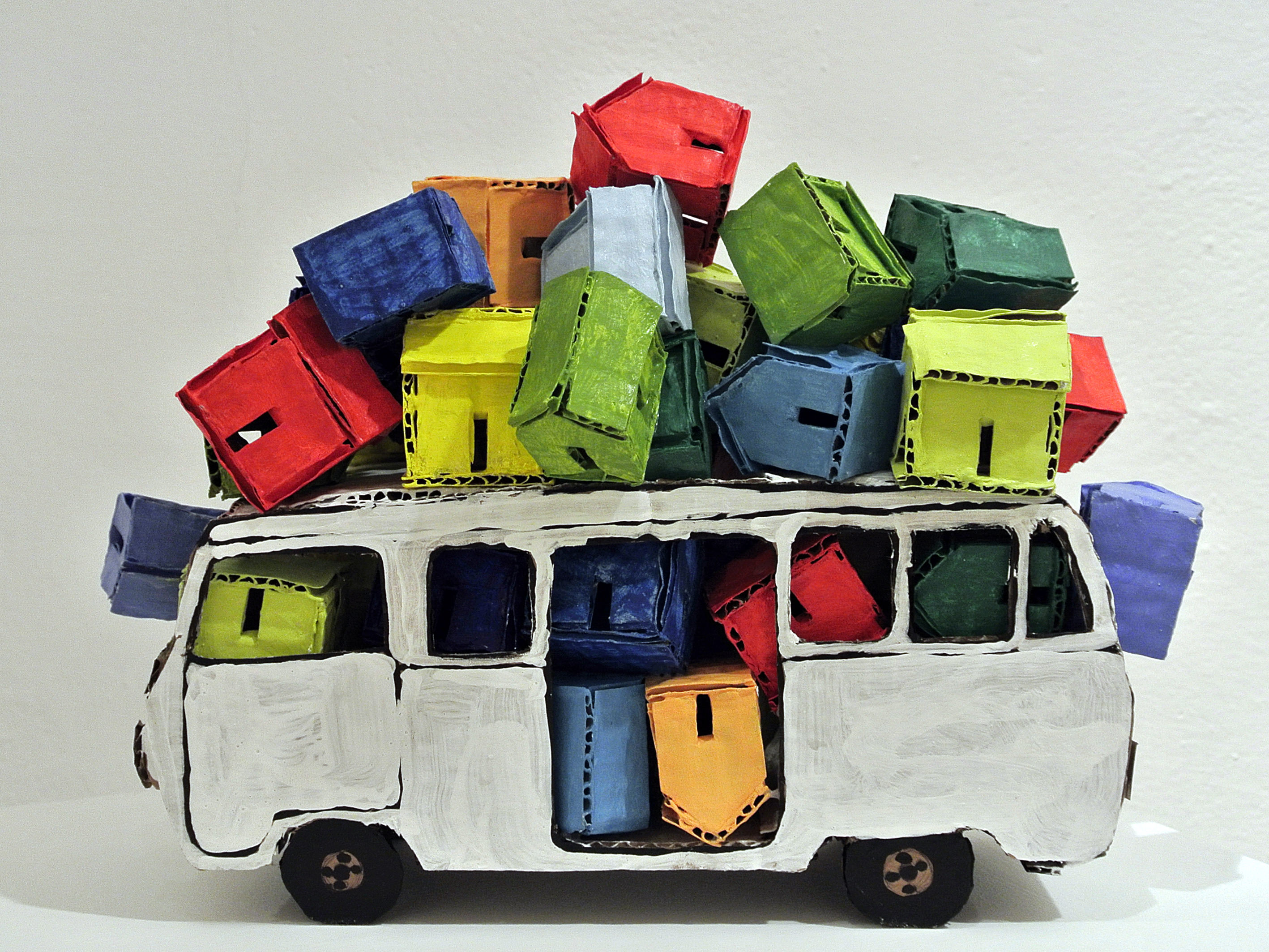 Colore e sapore della tradizione caraibica nelle accumulazioni di Josè Demetrio Pena, ma nulla cambia…il gioioso caos delle sue macchine, delle barche compresse in bus o in televisori (metafora del moderno altrove), parlano sì del viaggio e della possibilità di nuove vite, ma anche di transiti contemporanei in cui ogni mondo è paese, del valore della convivialità come recupero del sapore di tradizione e cultura e dunque dello stare insieme come stimolo ad andare avanti.