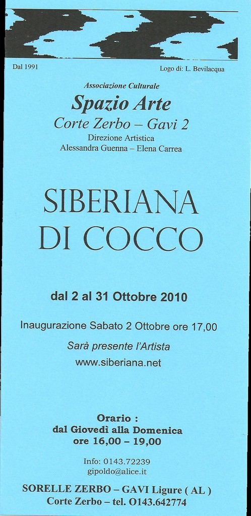 Nata a Pisa, dove risiede, Siberiana di Cocco propone un’opera in cui confluiscono, in uno stile personale e contaminato, attraverso tecnica mista e applicazioni di materia, gli influssi delle maggiori correnti artistiche del novecento, dal dadaismo al minimal, dalla pop art all’informale europeo.