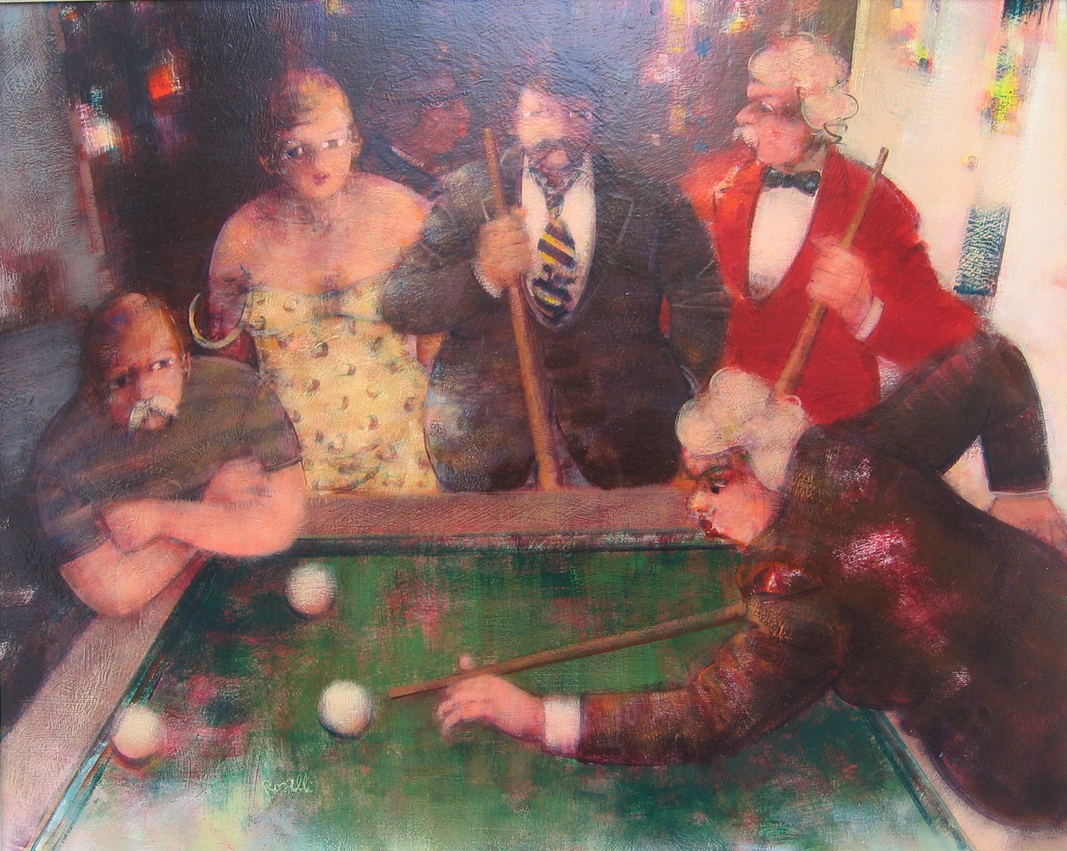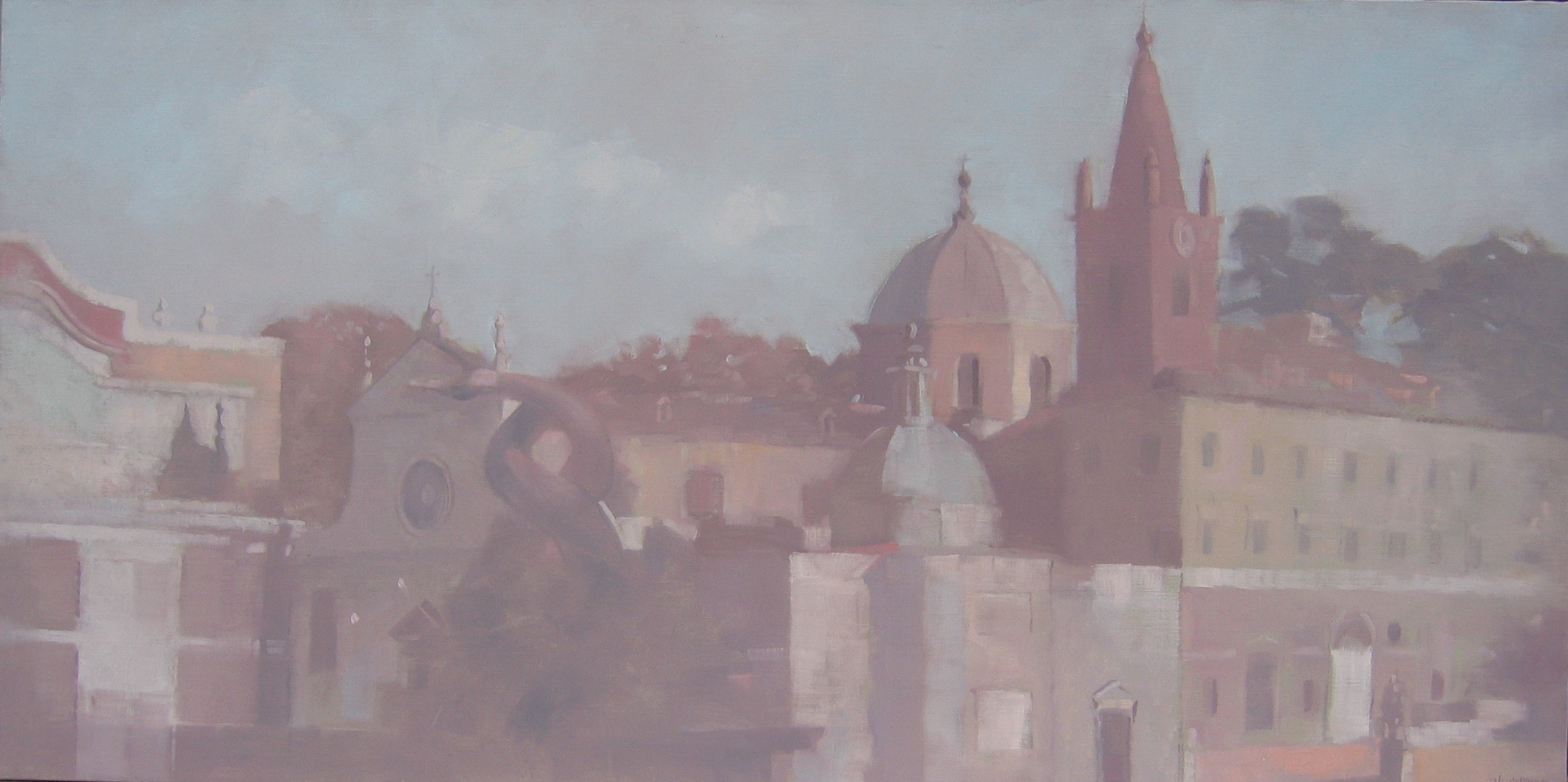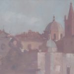 Entrambi gli artisti, straordinari interpreti della pittura contemporanea con oltre 40 anni di carriera al proprio attivo, trasportano lo spettatore in una realtà modificata nei colori e nelle forme creando un doppio effetto di riconoscimento e spaesamento. Sigfrido Oliva (Messina, 1942) dipinge la Roma più nota, quelle delle cupole e degli scorci del fiume Tevere, ma lo fa nebulizzando l’atmosfera in una luce dai toni opachi ed ovattati astraendo le linee in una visione onirica. Carlo Roselli (Milano, 1939), attraverso la consueta ironia e l’utilizzo di una tavolozza calda e dalle sfumature leggere, raffigura scene d’interno dove personaggi dall’aria stordita e inconsapevole popolano caffè di sapore primonovecentesco.