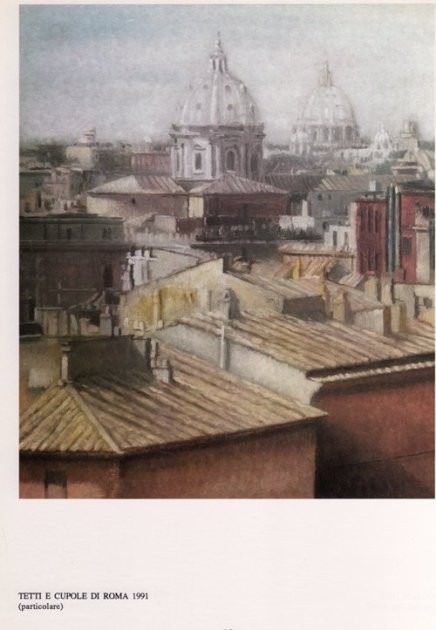 Nei dipinti viene fuori l’originale vena coloristica di Oliva, fatta di soffuse tonalità giocate sull’infinita gamma dei grigi e del turchese a volte mischiati al giallo e al rosa. Una pittura di atmosfere vaporose, eteree ed impalpabili, di grande suggestione poetica che nelle vedute romane fanno riscoprire la città rinascimentale e barocca, sotto un’altra luce, facendole acquisire un “carattere” particolare.