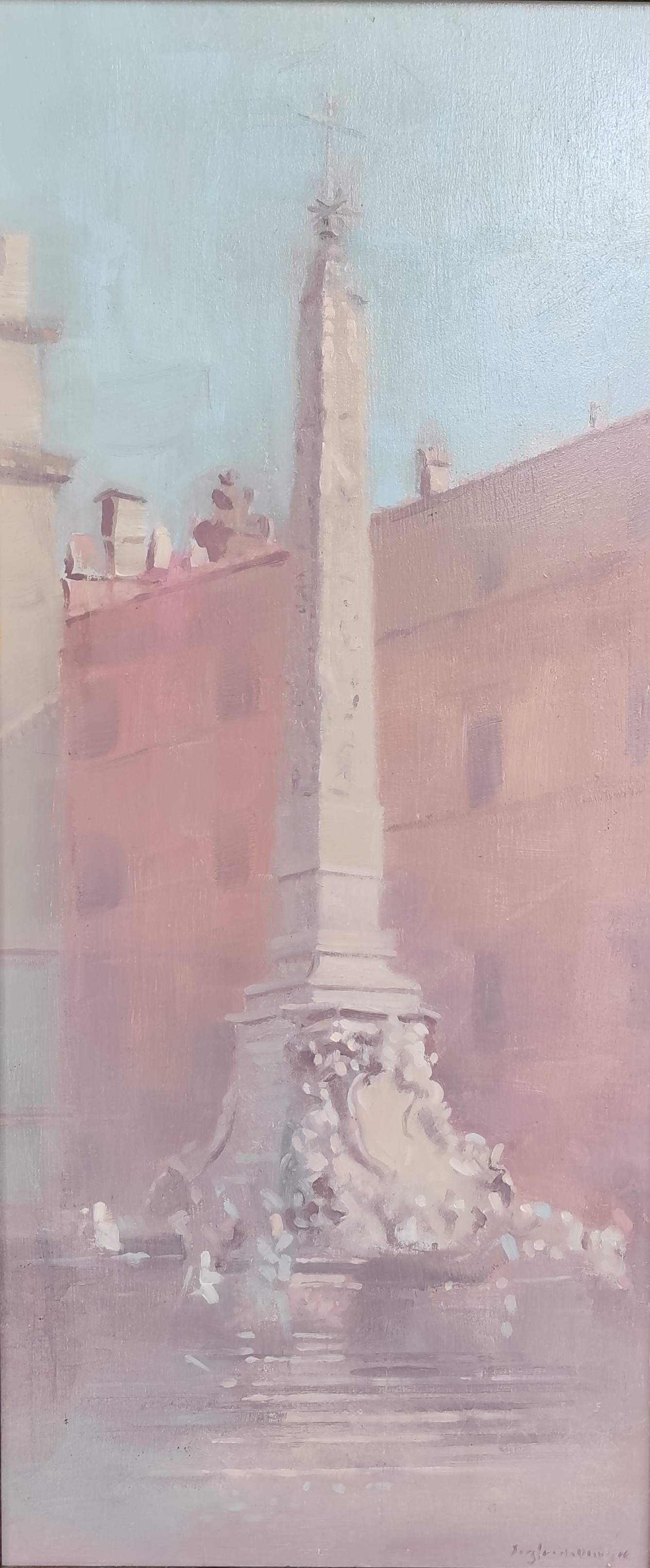E Alice Crisponi, sempre in catalogo, osserva che “I suoi paesaggi sembrano fare i conti con una distanza temporale e storica, più che con una dimensione spaziale. Le sue vedute romane, pregne di fascinazione per la storia e la stratificazione culturale che in esse si addensano, si rarefanno dinanzi al suo sguardo quasi imperlato dall’avverarsi di un sogno che lo accompagna da quando era ragazzo”.