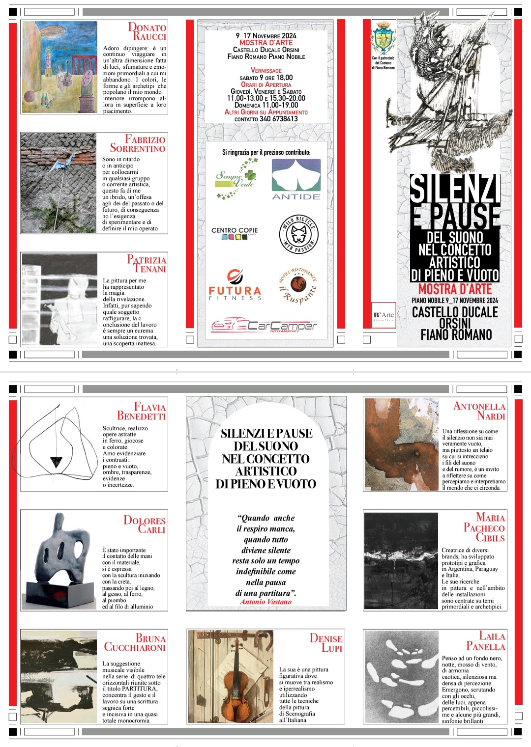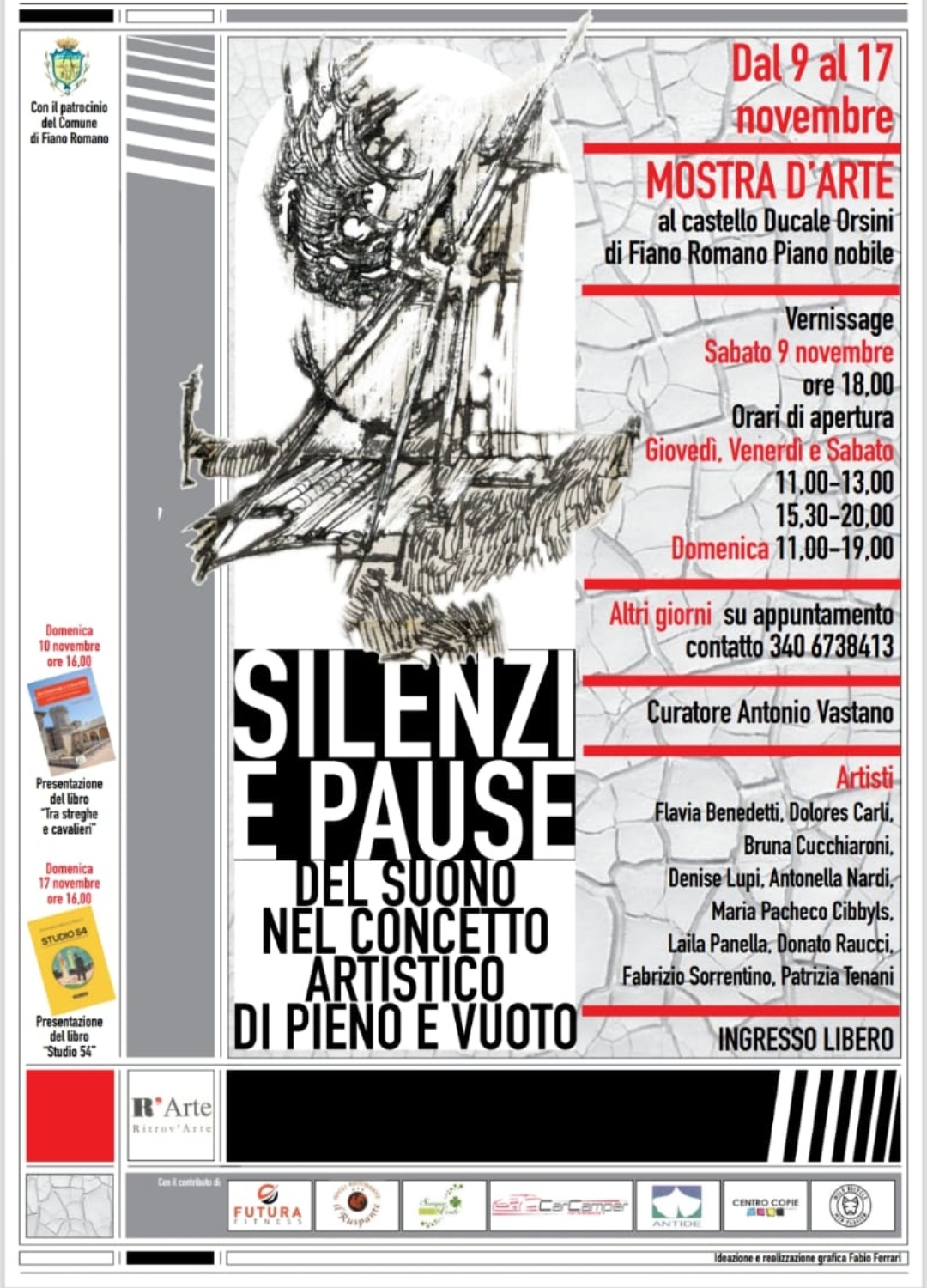 Presso il Castello Ducale Orsini di Fiano Romano dal 09 al 17 Novembre, l’Associazione “Ritrov’Arte” presenta la mostra dal titolo: “ SILENZI E PAUSE”…del suono nel concetto artistico di pieno e vuoto.