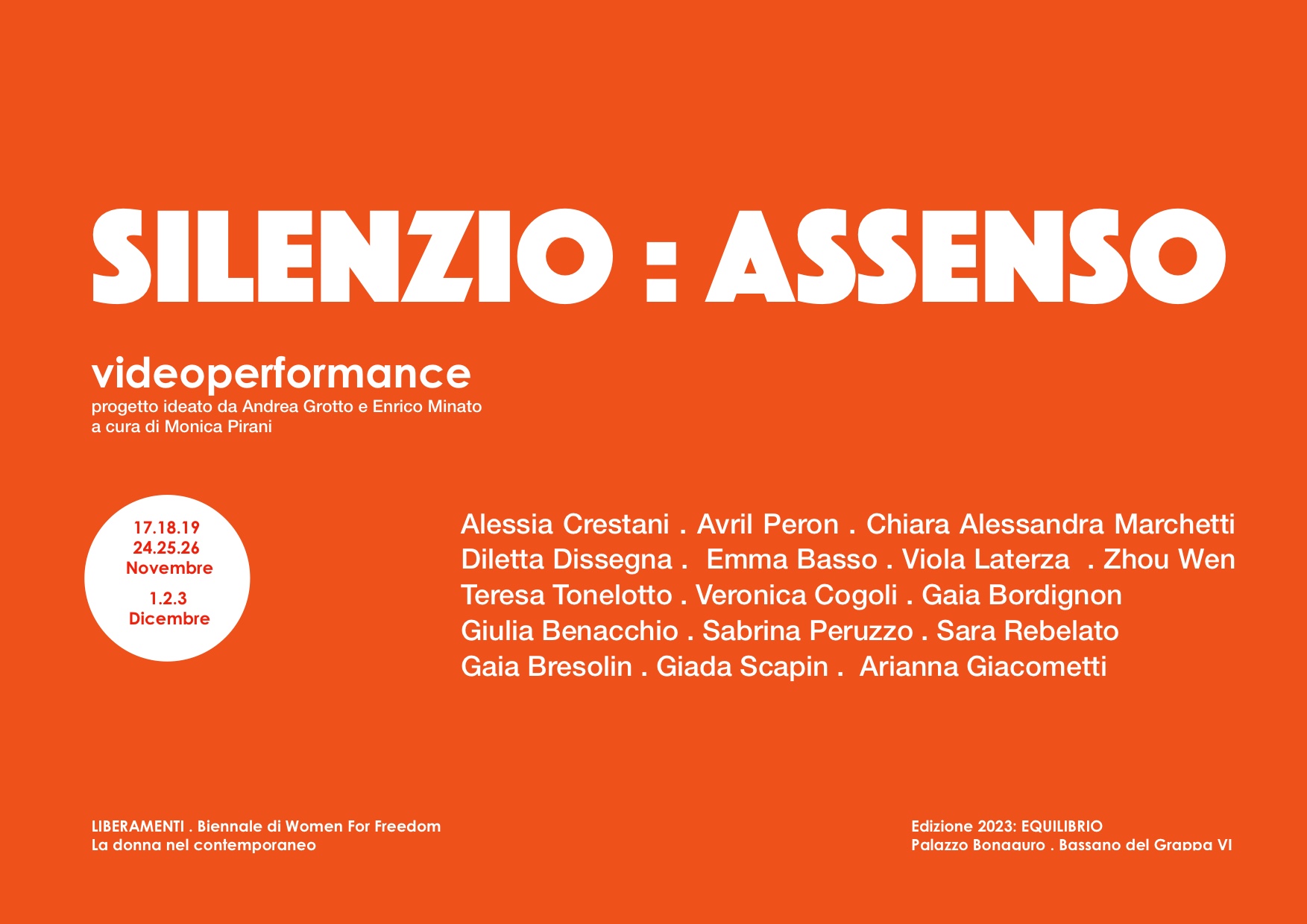 SILENZIO : ASSENSO è un progetto potente, essenziale e diretto, ideato da Andrea Grotto e Enrico Minato a cura di Monica Pirani che fornisce al pubblico l’opportunità di riflettere attraverso l’interpretazione di 15 artiste under 20, sul tema della violenza e dell’assenza di equilibrio di genere.