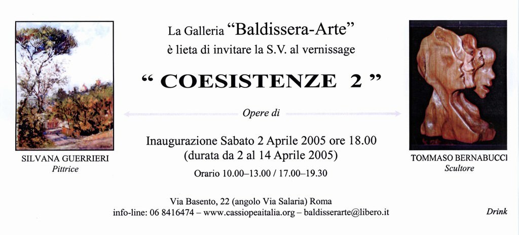 Bipersonale della pittrice Silvana Guerrieri e dello scultore Tommaso Bernabucci che, in questo incontro culturale, trovano l’occasione per esporre una teoria di opere in prevalenza appartenenti alla loro ultima produzione