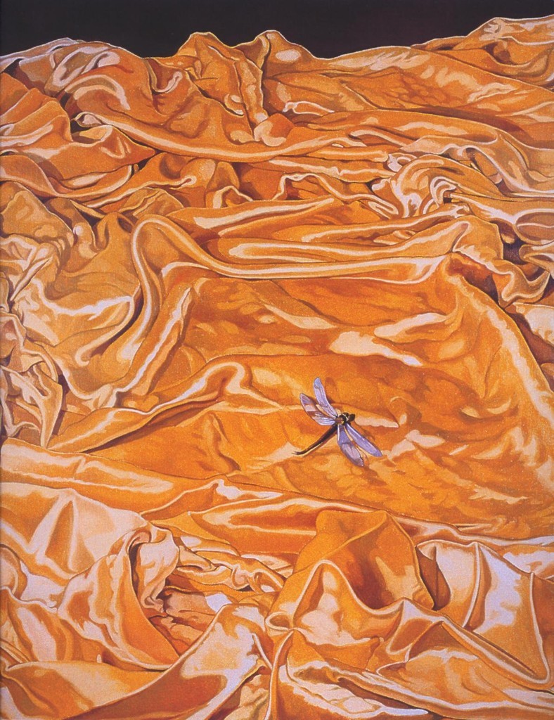 Due abiti muliebri ( di un guardaroba d’antan) abbandonati su due sedie davanti ad un tavolo imbandito per un te pomeridiano, portano immediatamente col pensiero ad un “gossip tra signore”. Un letto sfatto dalle lenzuola setose o una tavola apparecchiata con tovaglia in fiandra e ricchi merletti fanno immaginare una notte passionale o un tete-à tete romantico. Atmosfere che si dipanano “tra le pieghe” di preziosi tessuti, riprodotti con raffinata perizia, che lasciano alla capacità immaginativa del visitatore la possibilità di completare la scena. Come definire questo tipo di pittura? Non iperrealismo e nemmeno realismo (nella corrente accezione del termine) piuttosto metà-realismo tratto dalla secentesca “Natura immobile” e completato dall’utilizzo (ad personam) della luce di ispirazione impressionista.