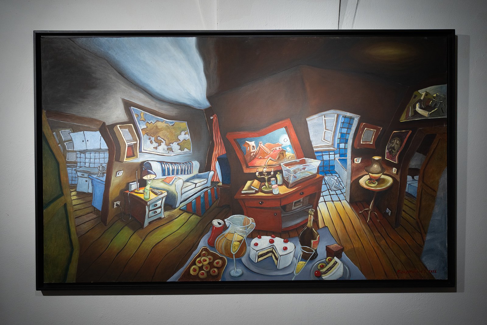 L’artista vibonese ha costruito un immaginario iconografico unico nel panorama dell’arte contemporanea, capace di distinguersi e rendersi da subito riconoscibile. La sua identità pittorica è determinata dagli elementi chiave che caratterizzano le sue opere, dagli oggetti domestici protagonisti delle opere, dalle prospettive distorte, come se gli ambienti fossero immersi all’interno di un fluido, e i colori a contrasto. Vi è poi una componente magica e favolistica che amalgama il tutto rendendo l’opera un mondo alternativo, nel quale le fantasie del bambino diventano il punto di vista dell’artista che ha saputo coltivare l’innocenza e il gioco anche in età adulta.