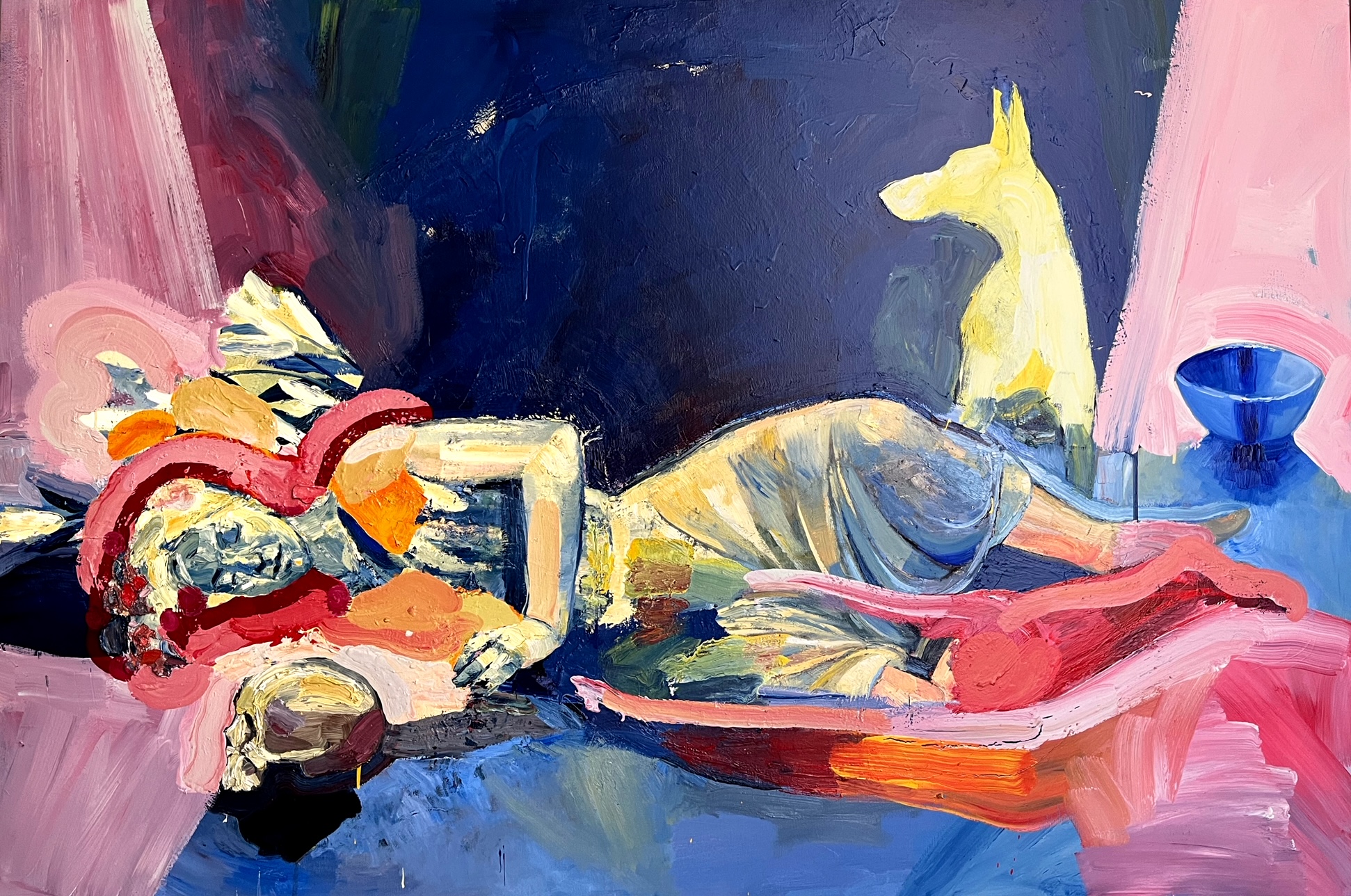 Argiolas, con una pittura cruda e sinuosa, dipinge un mondo popolato da donne attraenti e voluttuose. Una condizione esistenziale, specchio del nostro tempo, che potrebbe sembrare desiderabile, ma che in realtà non possiamo sapere. Al di sotto, infatti, potrebbero celarsi debolezze, frustrazioni. Invece, vediamo donne ritratte come fantocci erotici, figlie di una concezione maschilista della società.