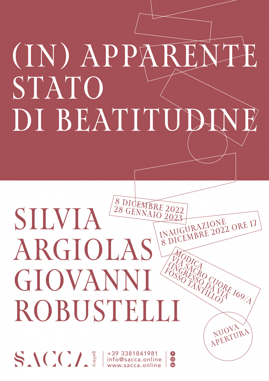 A poco più di 3 anni dalla prima apertura a Pozzallo (RG), la galleria d’arte contemporanea SACCA apre a Modica la sua nuova sede presentando una bipersonale di Silvia Argiolas (1977) e Giovanni Robustelli (1980). La prima è un’artista di origini sarde ma milanese d’adozione, mentre il secondo è siciliano, figlio di questo lembo di sudest. Con questa mostra la galleria continua la promozione di artisti legati al territorio in cui ha sede e allo stesso tempo amplia gli orizzonti proponendo un dialogo con un’artista non siciliana dal background nazionale e internazionale.