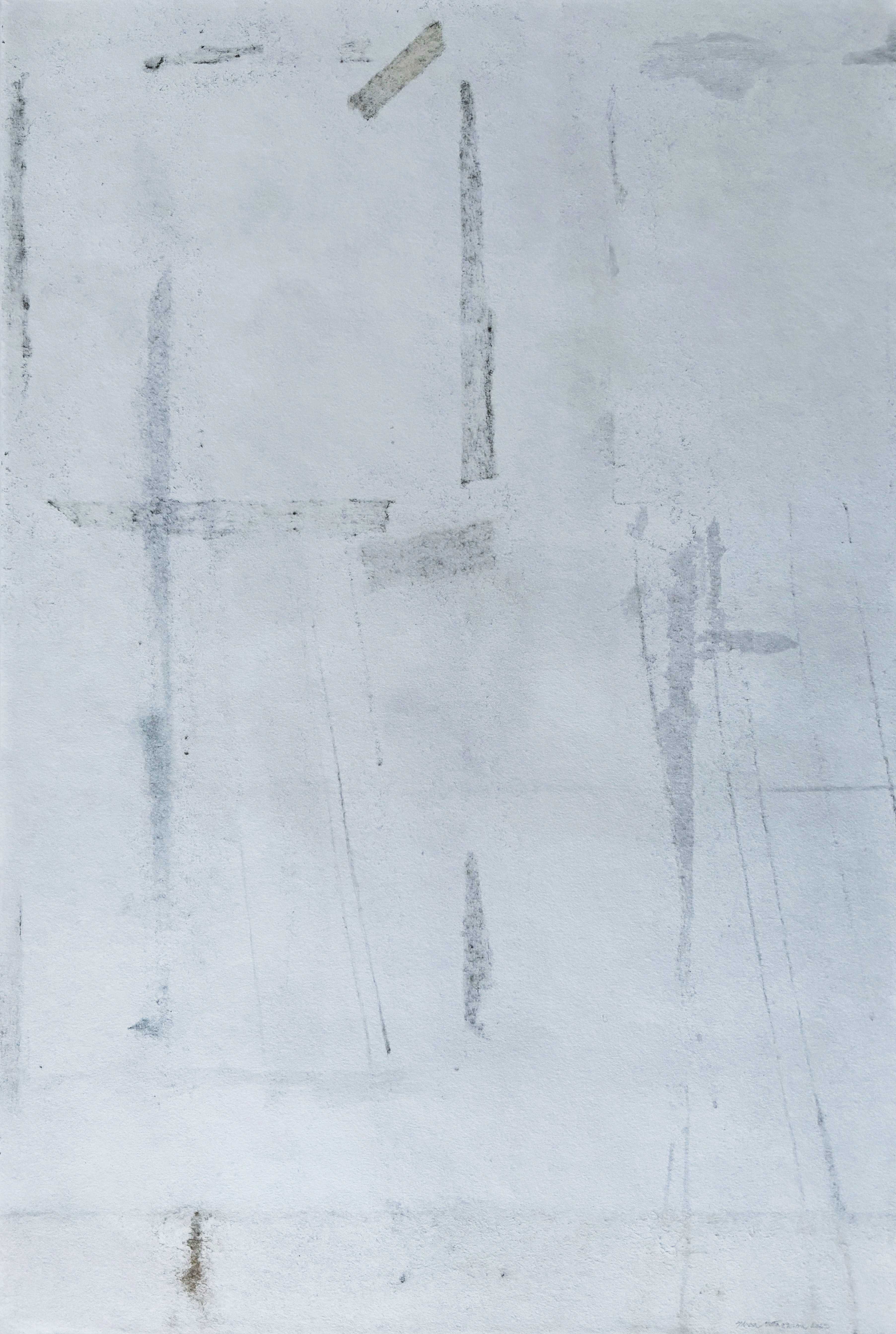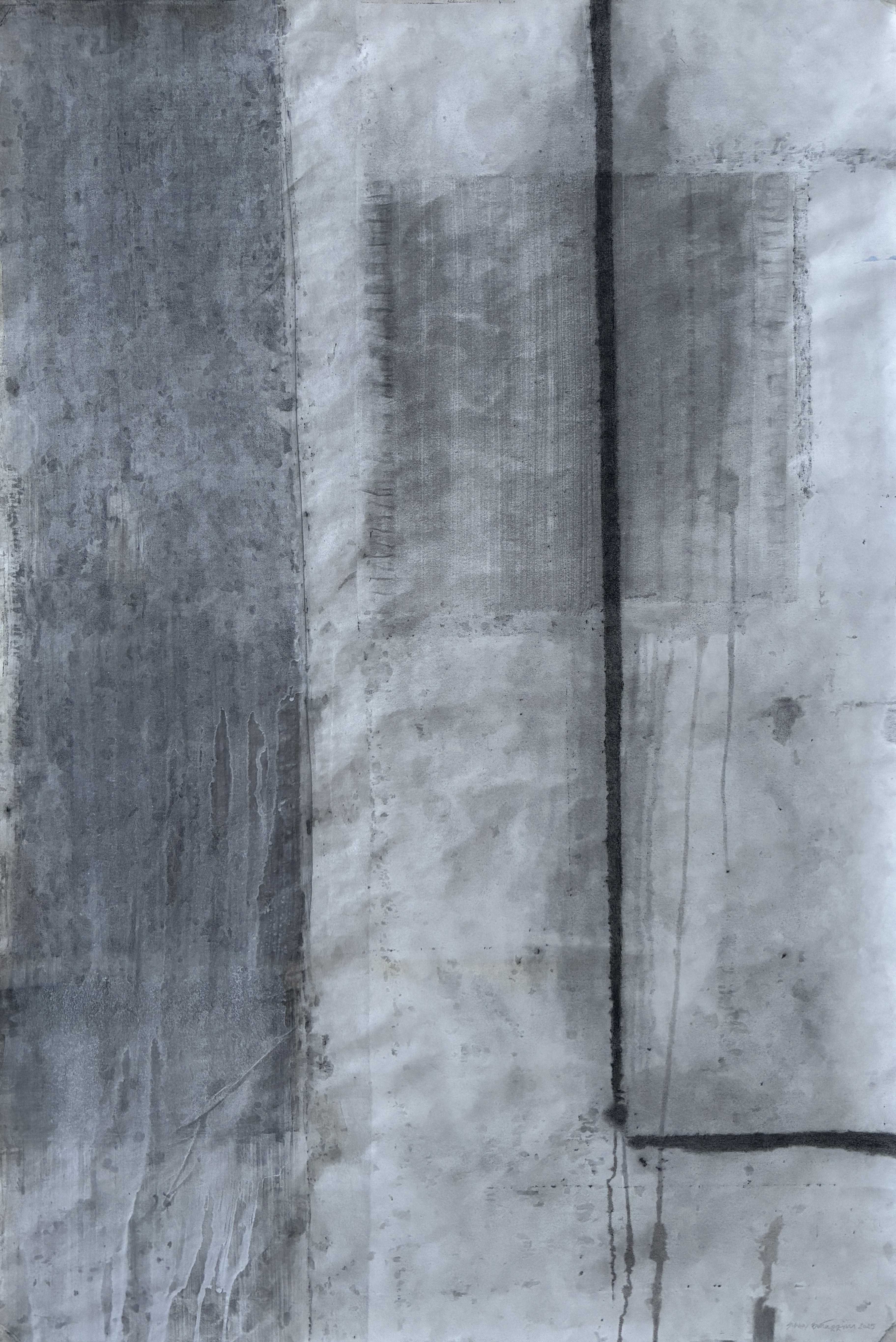 Ciò che tento di restituire è la memoria di un corpo elaborato, di una “presa d’appunti” di un vissuto mordace. La texture del visibile diventa segno e testimonianza della fragilità, carattere e confine di ciò che siamo. I residui e le impronte di grafite su fogli di carta giapponese sono i resti di un sentire interiore, che premono una presenza che grida nella loro labilità, una consistenza tangibile nell’estrema delicatezza che le contraddistingue.