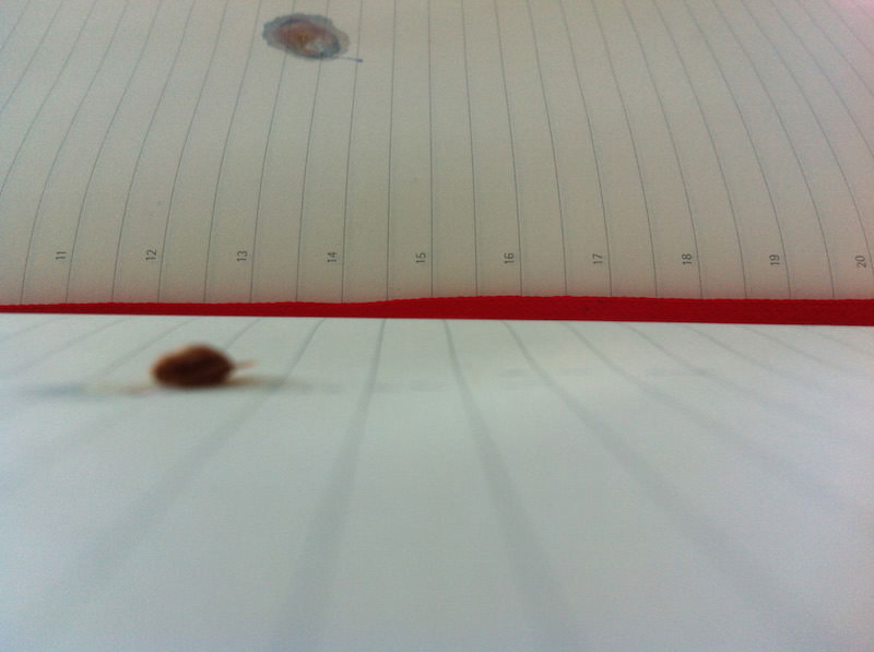 Durante l'azione del 10 novembre, le agende verranno ricollocate a terra e aperte svelando così la traccia cromatica e materica che il seme ha nel tempo depositato e stratificato sui fogli.