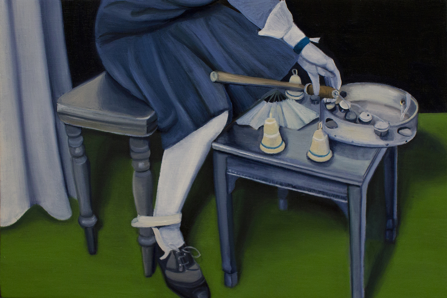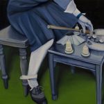 The artist, born in 1982, has lived and worked in Milan for years. She approached the oil technique almost by chance and since then has never stopped using it. Her dreamlike visions take shape within complex interior landscapes, made of flat backgrounds and a few enigmatic elements on which the viewer's gaze is forced to pause.
