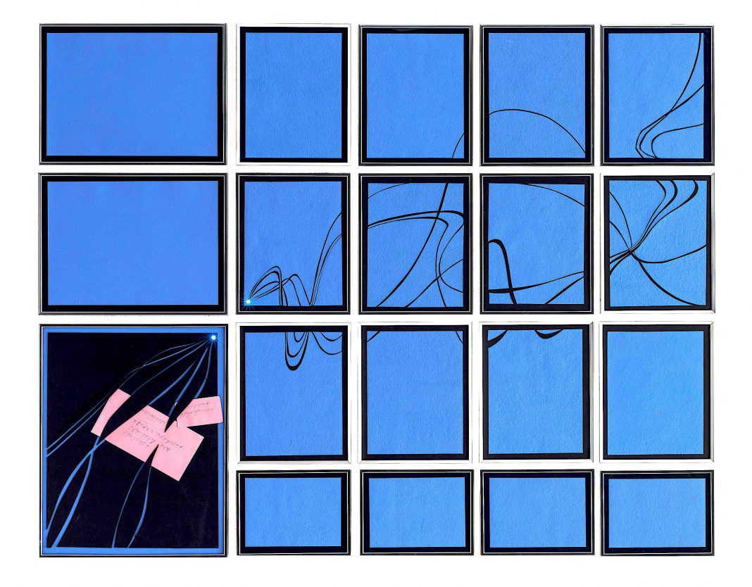 Silvia Iorio, attraverso le sue opere, esplora l’universo dell’astrattismo visionario e del post-realismo utilizzando principalmente l’acquerello, le lacrime e il fluoro luminescente, insieme ai rotoli di carta intrecciata, olografica e magnetizzata. Ne vengono fuori ampie o minuscole superfici blu, monocrome o trapunte di linee geometriche, asciutte o tempestate di stelle, che danno vita a un’opera enciclopedica e metaforica volta a raccontare ai visitatori le sue espressioni più intime, per renderle così universali.