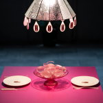 In un ambiente rosa, seducente e innocente solo in apparenza, lame e utensili in vetro raccontano la distanza tra ciò che mostriamo e ciò che viviamo. Ogni oggetto diventa una confessione, un pensiero non detto, una traccia del quotidiano che si spezza. Il ritmo della giornata – preparare il caffè, apparecchiare, sparecchiare – si trasforma in un rituale che parla di potere, cura, controllo e resistenza.