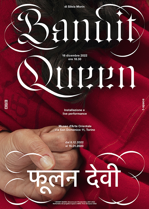 In occasione del progetto t-space X MAO Silvia Morin realizza un’opera inedita che indaga la figura di Phoolan Devi (Gurha Ka Purwa, 1963–Nuova Delhi, 2001), una donna la cui vita è stata caratterizzata da una serie tragica di eventi che la vedono prima sposa bambina, poi bandita, fino a divenire rappresentante del Parlamento e infine morire assassinata nel 2001 a soli 37 anni.