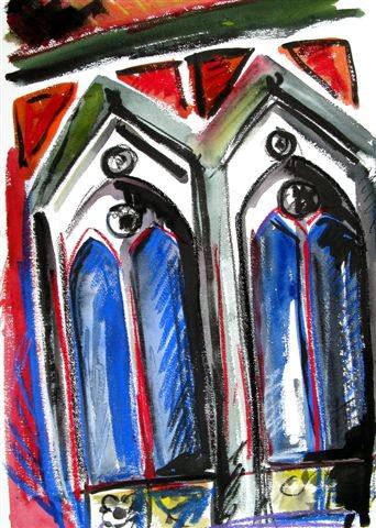 Su carta e su tela con tecniche miste, come l’acquerello abbinato a gessetti e inchiostri colorati, l’artista proietta sui supporti particelle di strutture architettoniche secolari e finestre come fossero uno sguardo interiore, appunto, sul mondo.