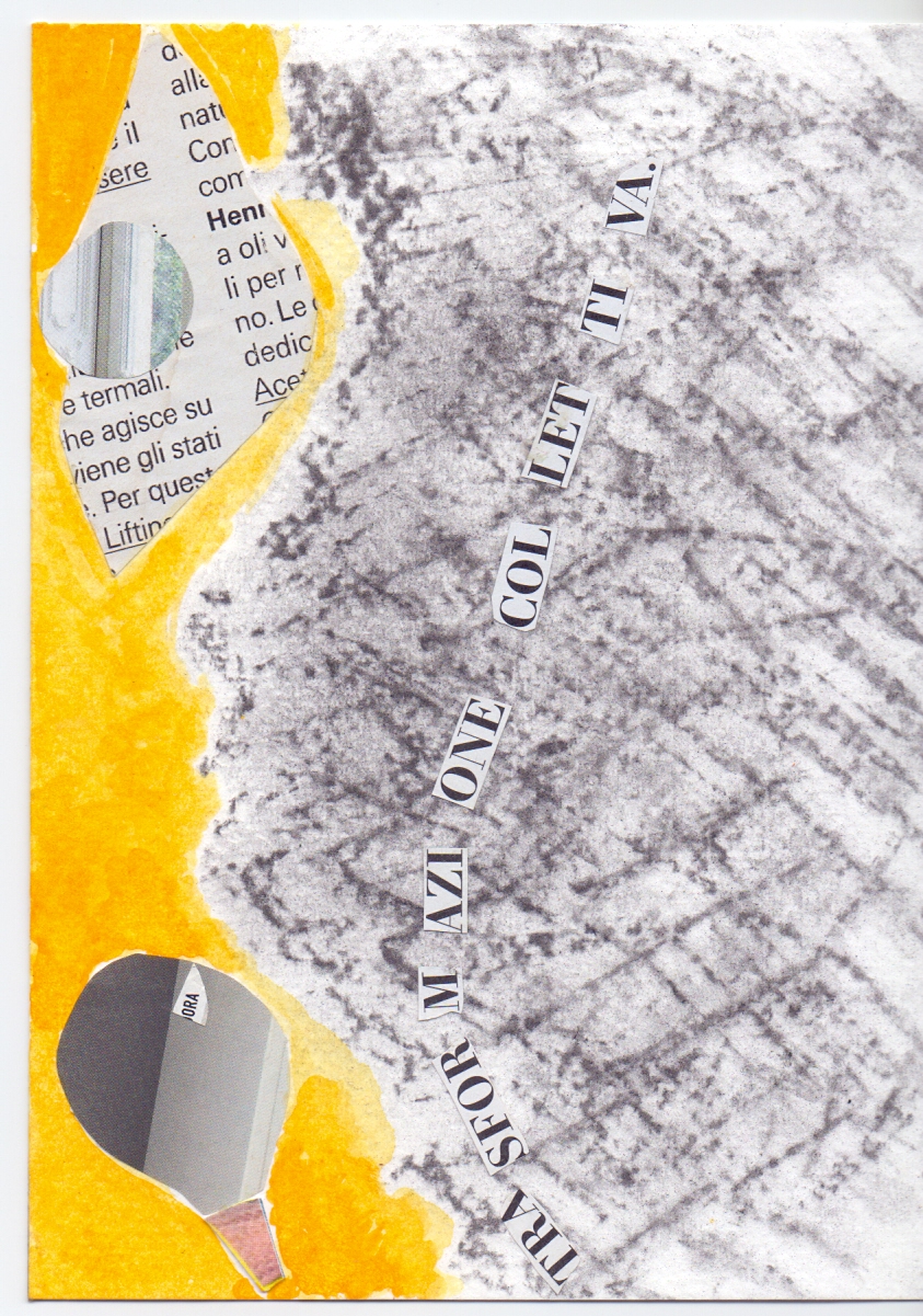 Sessanta POPCARDS, opere in formato cartolina, realizzate con scritte e ritagli di giornali, tempere e pigmenti. “Sono le cartoline-collage che Silvia Sperandio invia ai nostri sguardi ‘destinatari’ e noi per entrare in sintonia dobbiamo stare al gioco”, scrive la critica Francesca Agostinelli