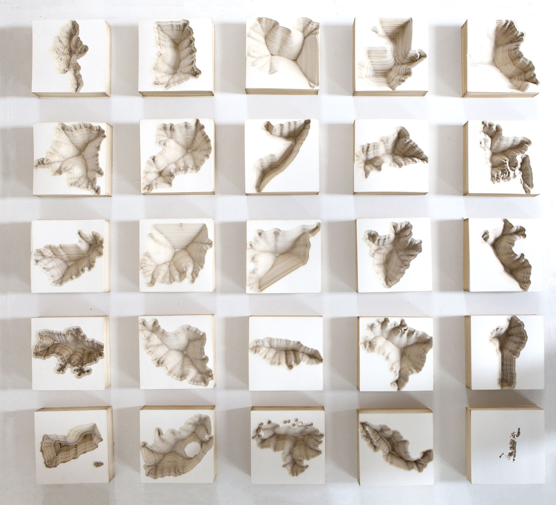 La ricerca di Silvia Spoti indaga il concetto di confine non solo come delimitazione geografica ma come costruzione culturale e politica. Attraverso la manipolazione di atlanti e mappe – incise, deformate e sovrapposte – l’artista mette in discussione la stabilità dei tracciati territoriali, rivelandone la fragilità e l’arbitrarietà. Nelle Non metrie, la carta viene trattata come materia scultorea e le proporzioni dei territori diventano fluide, alludendo anche a luoghi di conflitti spesso rimossi dal discorso mediatico occidentale.