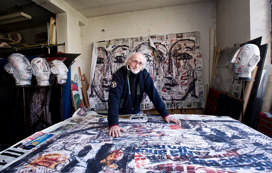 Silvio Monti, presso Spazio46 di Palazzo Ducale dispone sei grandi installazioni la cui materia prima è costituita dalla carta. Pagine di Repubblica lasciano la quotidianità per aggregarsi come materia nuova in un nuovo contesto, fisico e mentale (Stefano Bigazzi).