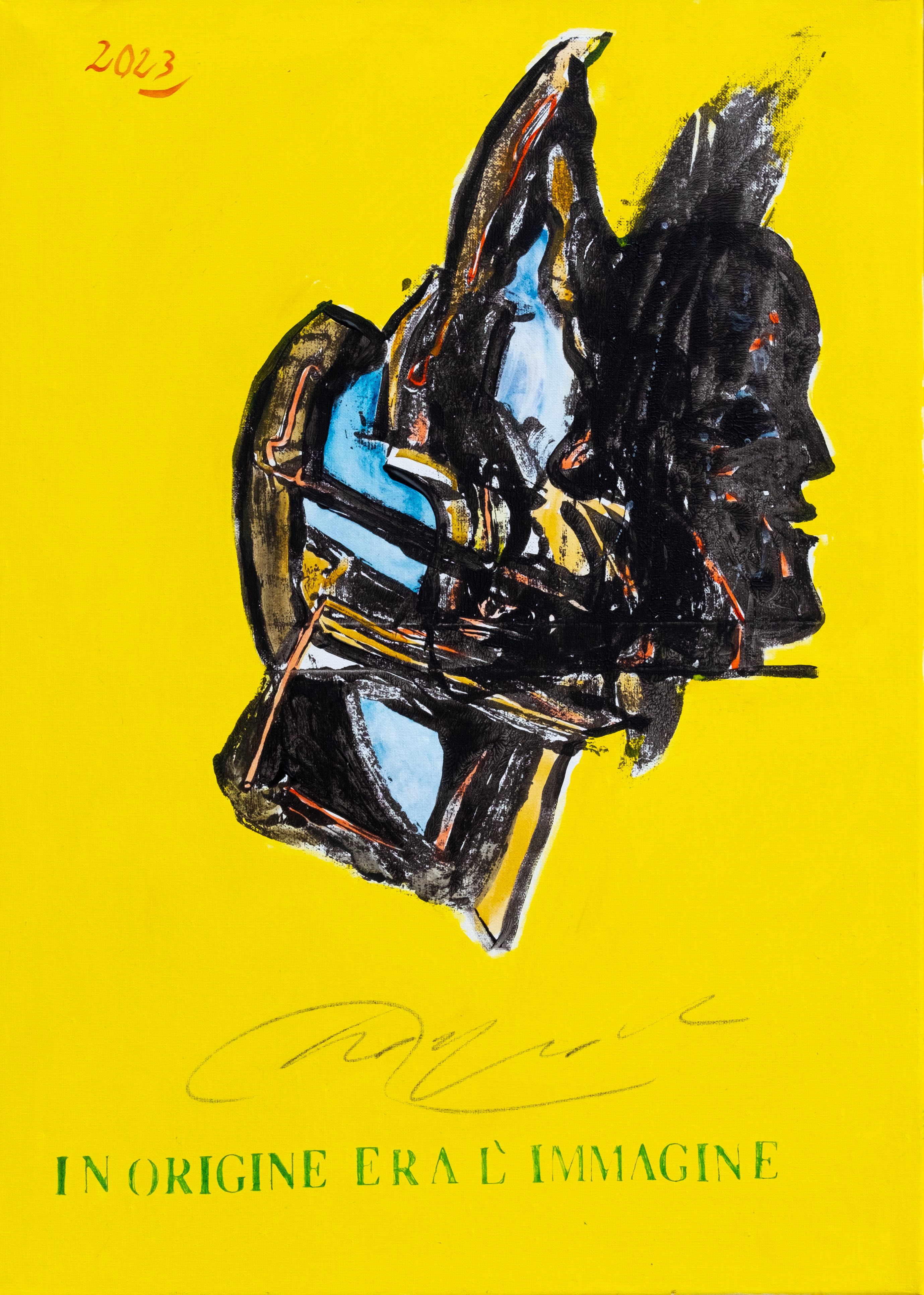 In questi lavori l’autore rimane da un lato fedele alla sua prima indagine visiva e quasi psicanalitica della città, dall’altro riscrive attraverso la pittura un nuovo codice, con il quale racconta mondi arcaici, rituali contemplativi, dove la ricchezza culturale incontra la sintesi del simbolo e del colore.