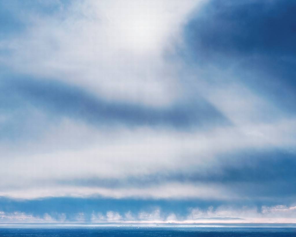 una suggestiva marina, l’orizzonte basso sovrastato da un’enorme massa di nubi. I colori