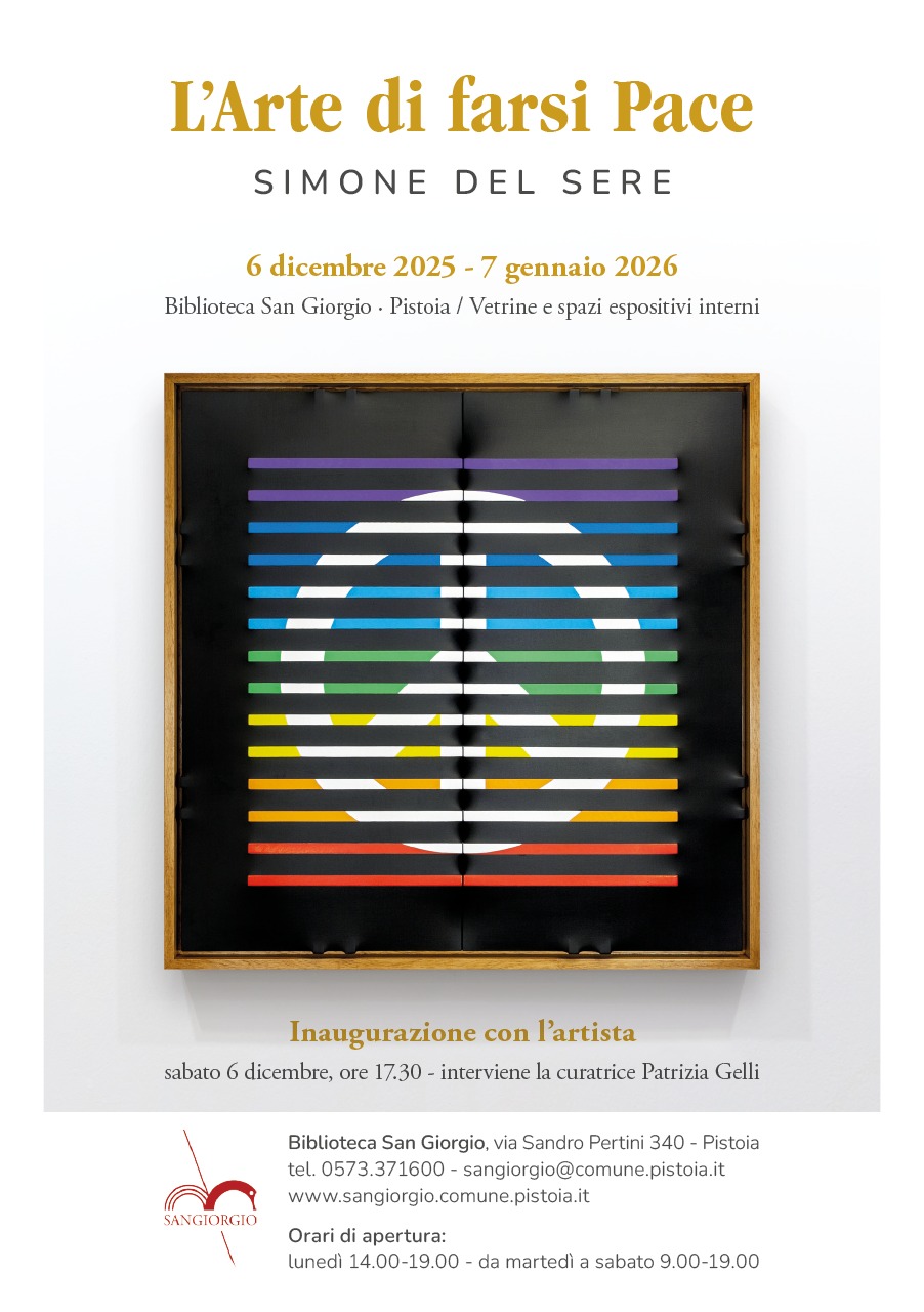 Si intitola “L’Arte di farsi Pace: codici estetici della crisi e della ricomposizione” la nuova mostra personale di Simone Del Sere, che verrà inaugurata alla presenza dell’artista sabato 6 dicembre (ore 17:30), negli spazi della Biblioteca San Giorgio di Pistoia. L’esposizione, curata dalla storica dell’arte Patrizia Gelli, resterà visitabile fino a mercoledì 7 gennaio 2026, proponendo un percorso immersivo che attraversa le fratture della contemporaneità e ne indaga le possibilità di ricomposizione. L’ingresso è gratuito con apertura al pubblico il lunedì (14 - 19) e dal martedì al sabato (9 - 19).Allestita tra le vetrine e gli spazi interni della biblioteca, la mostra si presenta come un itinerario dialettico che affronta la transizione dal trauma identitario – la Crisi – alla ricerca di nuove strutture di senso e di relazione – la Pace. La scelta della Biblioteca San Giorgio come sede espositiva è profondamente simbolica: in un luogo dedicato alla conoscenza, alla memoria e alla costruzione collettiva del sapere, l’arte di Del Sere diventa uno strumento di interrogazione etica e di ricostruzione interiore, invitando il pubblico a leggere la propria epoca attraverso uno sguardo più ampio. A dare ulteriore spessore al progetto è il testo critico del Direttore del Museo dell’Opera del Duomo, mons. Timothy Verdon, che ha accompagnato negli anni alcune delle principali opere di Del Sere dedicate al tema dei migranti e delle guerre contemporanee. “L’Arte di farsi Pace” è una mostra che afferma che la pace non è un evento improvviso né una sospensione temporanea della crisi ma una pratica attiva che richiede tempo, impegno e ascolto. La crisi, nella sua brutalità, contiene in sé il seme della ricomposizione: ciò che è frammentato può trovare nuove forme di ordine e ciò che è in transito può generare nuovi codici della convivenza. L’arte diventa così strumento epistemologico per comprendere e superare le fratture del presente, offrendo al visitatore un possibile orizzonte di speranza.Il percorso espositivoIl percorso espositivo si apre con la sezione dedicata alla Crisi, collocata nelle vetrine che segnano l’interfaccia tra la città e l’istituzione. Qui si incontrano opere come #Justanumber e Pesci neri, che affrontano il tema dei fenomeni migratori del Mediterraneo. La stratificazione del colore, la rottura della bidimensionalità e l’uso di un linguaggio materico forte evocano la perdita, la disumanizzazione e la riduzione dell’identità a variabile numerica. Le maschere, ricorrenti nel lavoro dell’artista, emergono come dispositivi di rivelazione restituendo dignità alle storie che rischiano di rimanere mute.Nella stessa sezione fanno tuttavia apparizione due figure di intensa sospensione lirica: la Mater Migrantes, archetipo di resilienza e cura, una madre che protegge, resiste e supera la violenza del contesto e La sognatrice sulle acque, opera che introduce una dimensione di attesa, quasi metafisica, in cui il dramma non è negato ma contemplato, come se una promessa di altro fosse ancora possibile.Superato l’ingresso, la mostra entra nella sezione dedicata alla Ricomposizione, allestita nelle sale della biblioteca. Qui il codice linguistico si trasforma radicalmente e la scomposizione emotiva lascia spazio alla ricerca di ordine. Nelle serie Metaponti e Concordanze, la tela estroflessa diventa un vero e proprio “spartito tridimensionale” attraverso il quale l’artista indaga il concetto di connessione. La ricomposizione descrive la ricerca di una coerenza nuova, più consapevole. Il percorso si conclude con l’opera Pace, intesa non come assenza di conflitto, ma come disciplina strutturale ed etica: un equilibrio da riconquistare attraverso il lavoro interiore e collettivo.Il testo critico di Timothy Verdon, Canonico del Duomo di Firenze e Direttore del Museo dell’Opera del DuomoA dare profondità al progetto è il contributo critico di Timothy Verdon, Canonico del Duomo di Firenze e Direttore del Museo dell’Opera del Duomo, che inserisce il lavoro di Simone Del Sere in una riflessione più ampia sul presente. Verdon ricorda come, nell’anno del Giubileo della Speranza indetto da Papa Francesco purtroppo segnato da conflitti dolorosi, l’artista riporti al centro della sua opera gli esclusi: i migranti che attraversano il Mediterraneo in cerca di futuro, spesso incontrando solo morte e silenzio. Del Sere sceglie di rappresentarli non nella minaccia percepita, bensì nella loro vulnerabilità, concentrandosi sulle figure femminili e sulle loro maschere tribali, cariche di nobiltà, storia e misteriosa dignità.Il critico evidenzia poi il passaggio dall’esperienza tragica della separazione a quella della connessione: i “meta-ponti” di Del Sere diventano architetture di possibilità, attraversamenti gioiosi, aperture a nuove relazioni. Nella serie Concordanze, infine, la geometria si fa lingua poetica e la tecnologia diventa strumento espressivo, suggerendo un ordine nascosto che può ricomporre ciò che appare fratturato. Per Verdon, il titolo “L’Arte di farsi Pace” chiarisce l’impianto etico della mostra: imparare a riconciliarsi con sé stessi per poter poi essere pace nel mondo, contribuendo all’abbattimento delle barriere tra individui e comunità. Una forma di disciplina interiore che, come ogni arte, richiede impegno, ascolto e un gesto profondamente umano di responsabilità.La mostra sarà visitabile dal 1° dicembre 2025 al 7 gennaio 2026, con apertura al pubblico il lunedì dalle 14 alle 19 e da martedì a sabato dalle 9 alle 19.L’ARTISTA