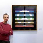 Simone Del Sere (1971) incarna la figura dell’artista che giunge alla pittura non per scelta iniziale piuttosto per necessità espressiva. La sua formazione si svolge presso l’Istituto Statale d’Arte di Firenze, ma è nel poliedrico e pragmatico mondo dell’editoria, della televisione e della grafica che matura la sua carriera professionale. Per oltre due decenni ha lavorato nell’ambito dell’illustrazione, della post-produzione cinematografica e della comunicazione pubblicitaria, affinando una straordinaria sensibilità per i codici visivi e le strutture del messaggio. Questa esperienza, centrata sulla sintesi e sull’impatto visivo, è fondamentale per comprendere il suo approccio maturo all’arte. Quando Del Sere abbandona il digitale per abbracciare la materia, spinto da un “irresistibile desiderio di ricerca”, che l’artista stesso definisce una “follia necessaria”, porta con sé la disciplina del designer: una meticolosa attenzione alla geometria, all’ortogonalità e alla potenza del simbolo.