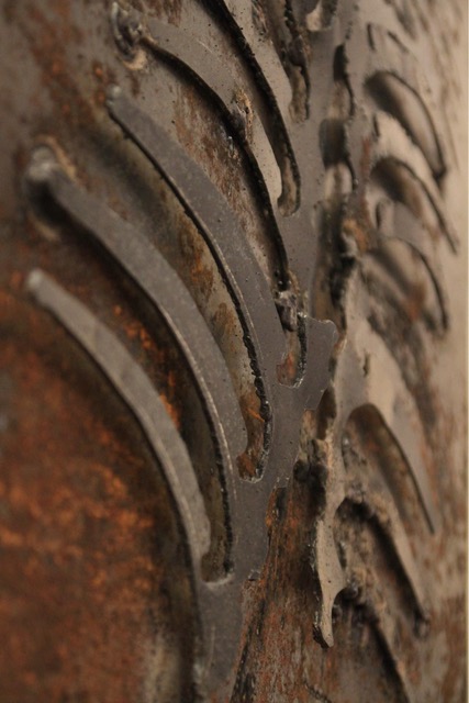 Il ferro, materiale resistente ma soggetto a trasformazione, registra processi di incisione, corrosione e attraversamento. La superficie diventa campo di tracce, luogo in cui si inscrivono forze esterne e interventi intenzionali. La scultura non si offre come forma conclusa, ma come spazio di lettura in cui strutture fisiche, simboliche e psichiche emergono nel loro stato di vulnerabilità.