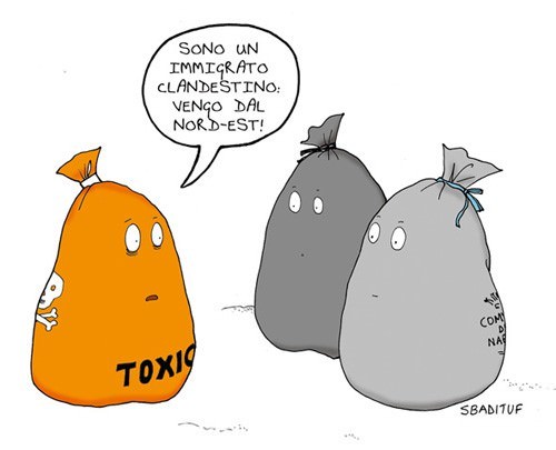 Sotto i riflettori fa caldo e anche i protagonisti di queste esilaranti vignette sudano i loro umori doppiamente mortificanti: dietro i cumuli di immondizia c'è una civiltà negata e deprivata dell'informazione; sotto i cumuli invece, viene nascosta la vera emergenza rifiuti: quella dell'irreparabile inquinamento – da rifiuti industriali tossici – dei terreni agricoli, delle acque, del cibo e della salute.
