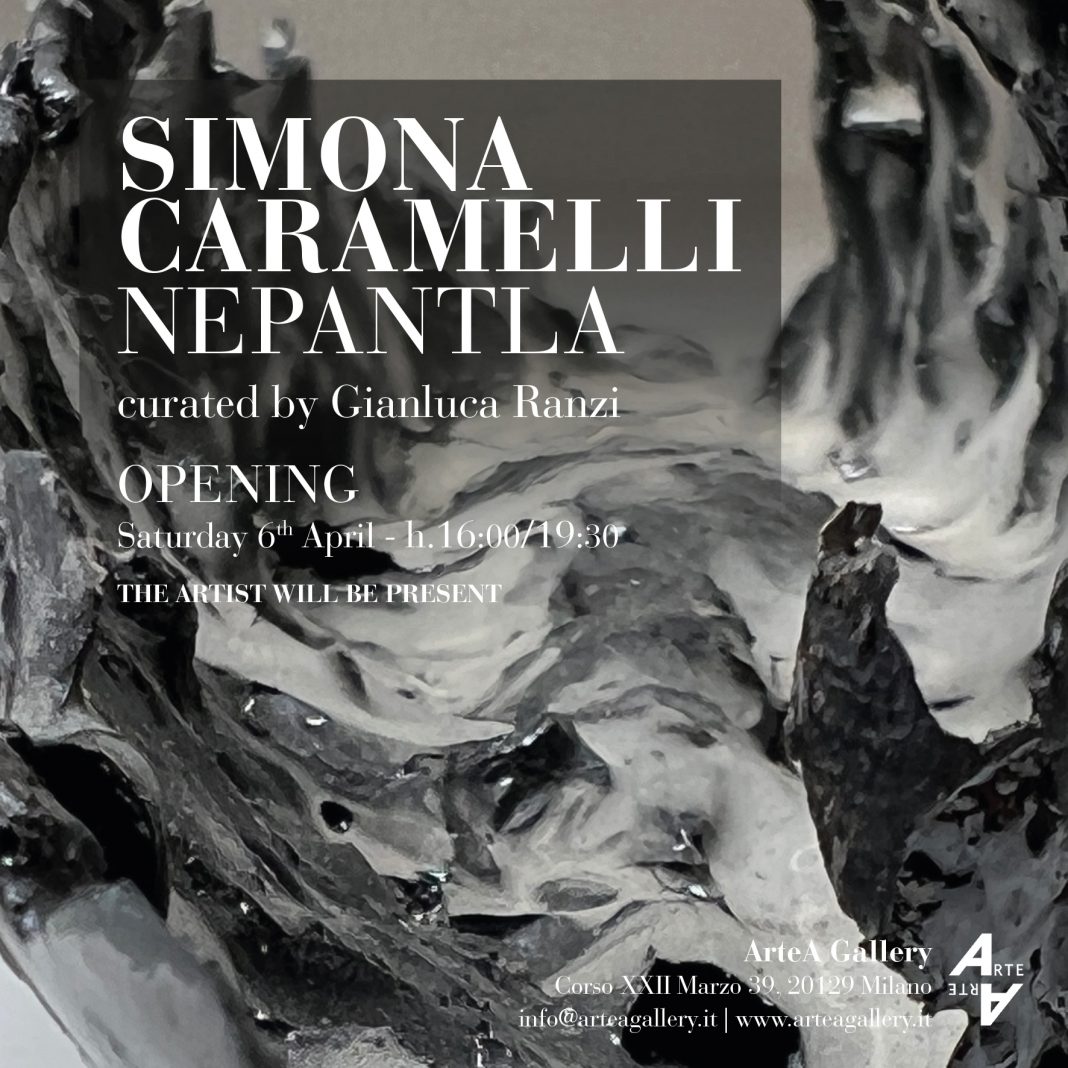 Le sculture in ceramica di Simona Caramelli, la più recente produzione dell’artista, mostrano un immaginario mobile in cui la materia gioca con il pieno e il vuoto, l’opaco e il lucido, forme organiche e minerali, suggestioni mitologiche e riferimenti personali. La scelta del bianco e del nero, tonale e anch’essa mobile, risveglia stupore e interrogazione di fronte ad oggetti che uniscono familiarità e spaesamento, solidità e disorientamento. Come l’artista stessa ha sottolineato: “Sentirsi disorientati nello spazio equivale a vivere “en Nepantla”, sperimentare alternanze di dissociazione di identità, crolli e ricostruzioni”.